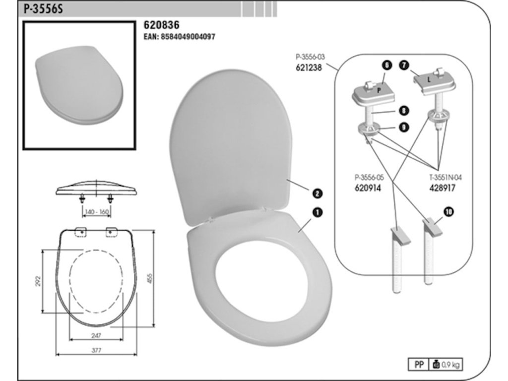 WC prkénko z termoplastu v bílé barvě a délkou sedátka 45,5 cm. Panty z plastu se skrytým uchycením. Rozteč upevnění 14 cm.Doplňkové parametry