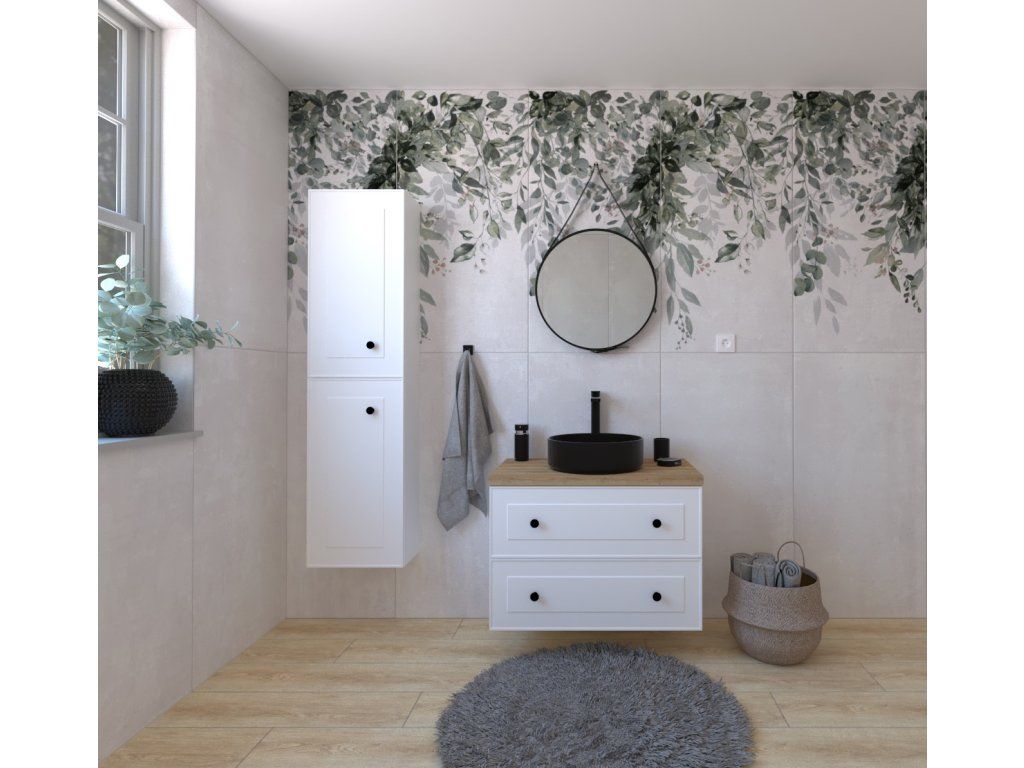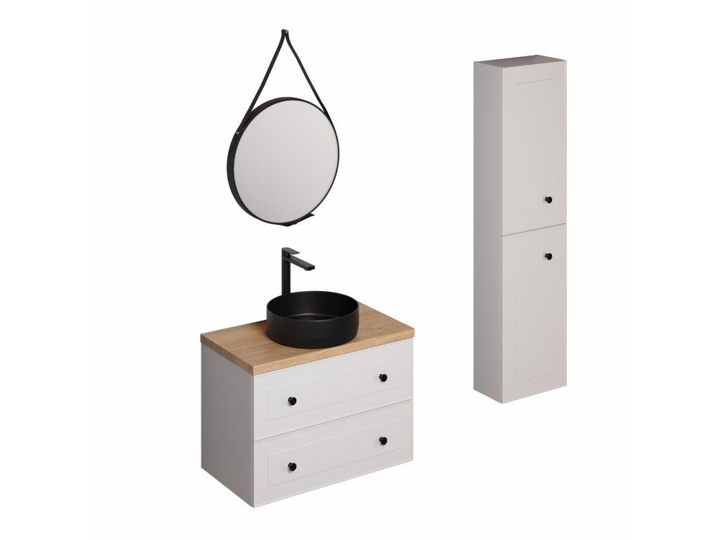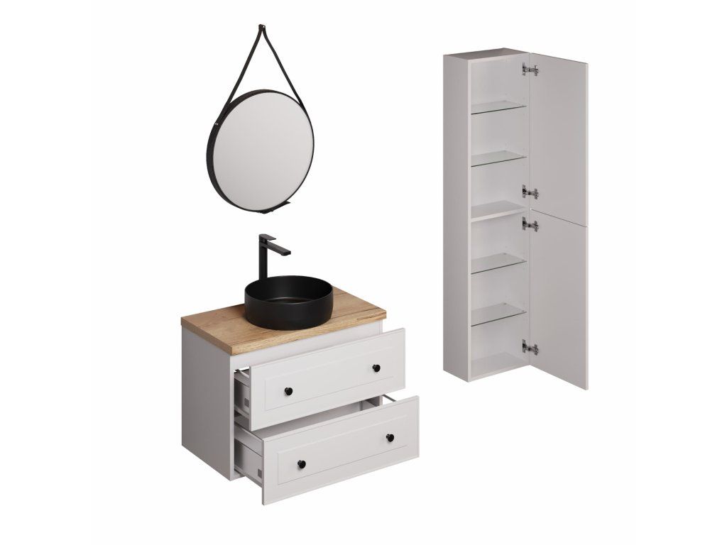 Závěsná koupelnová sestava s keramickým umyvadlem v bílé barvě s fóliovaným povrchem. S plnovýsuvem a dotahem.Doplňkové parametry