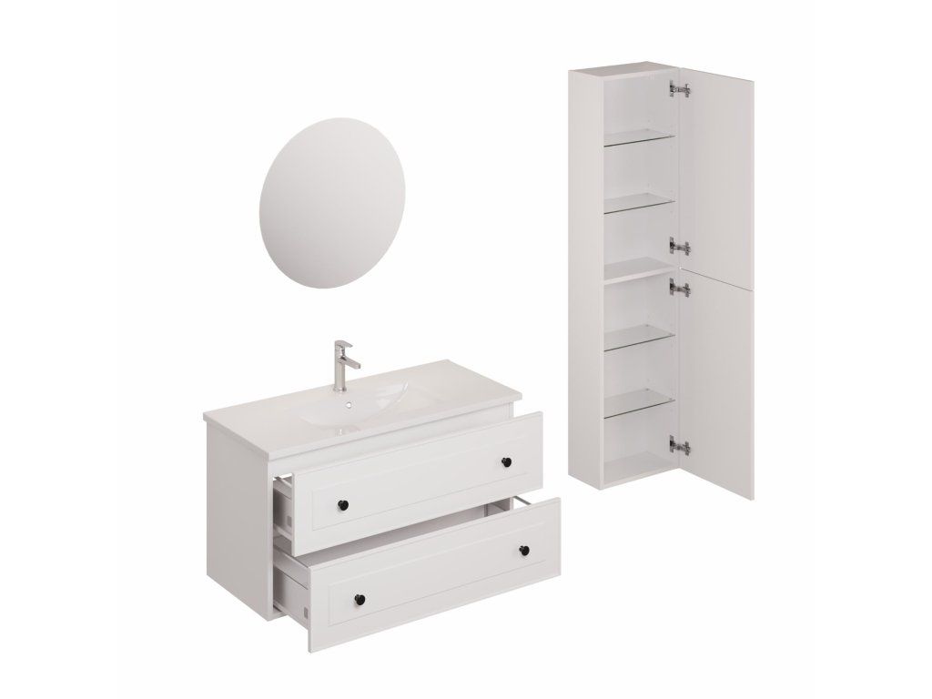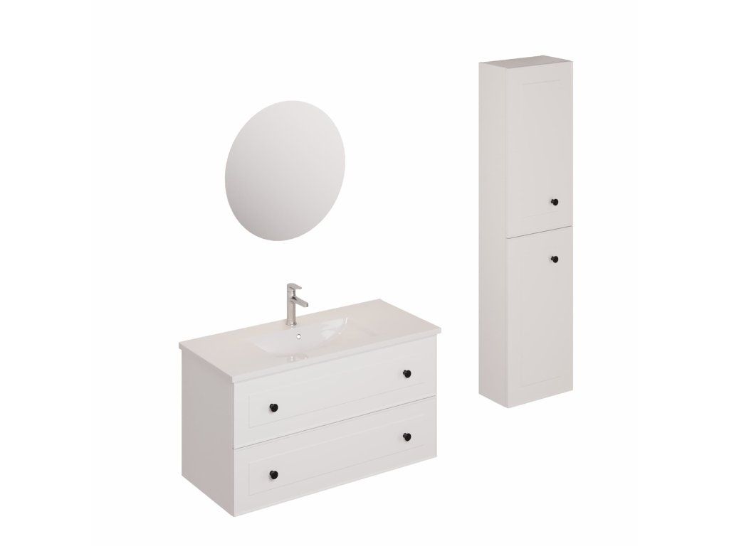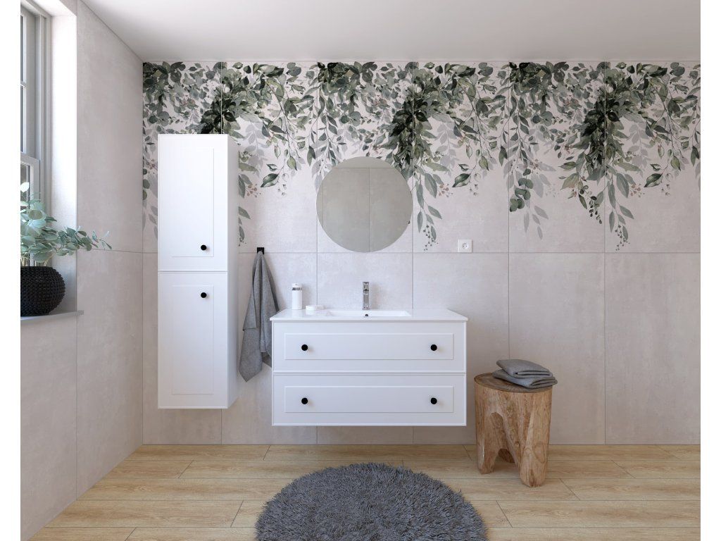 Závěsná koupelnová sestava s keramickým umyvadlem v bílé barvě s fóliovaným povrchem. S plnovýsuvem a dotahem.Doplňkové parametry