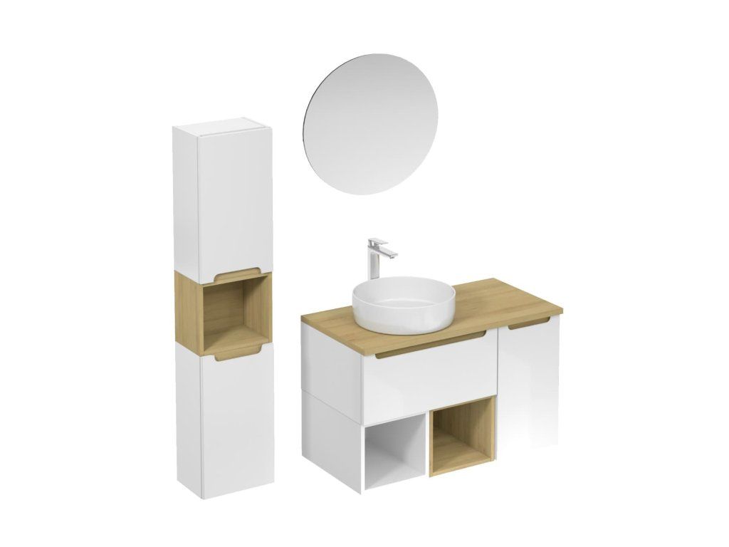 Závěsná koupelnová sestava s keramickým umyvadlem v bílé barvě s lesklým povrchem s fóliovaným povrchem. S plnovýsuvem a dotahem.Doplňkové parametry