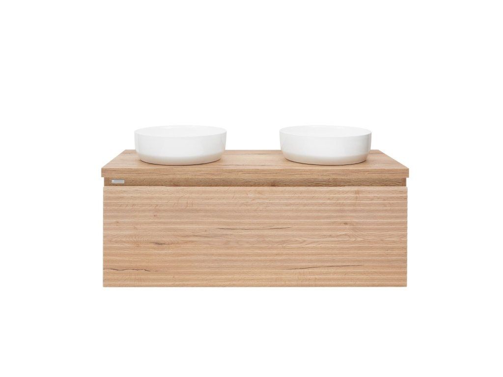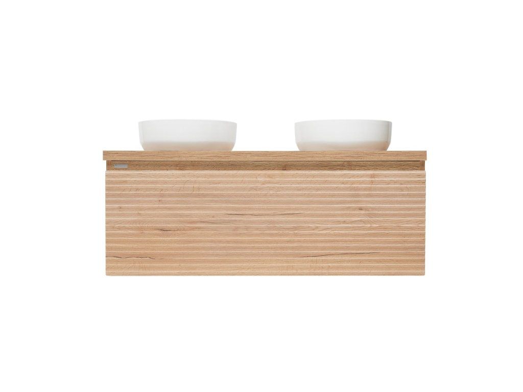 Závěsná koupelnová skříňka pod umyvadlo v dekoru dub halifax s matným povrchem o rozměru 118x43x44,8 cm. Povrch v provedení lamino.Doplňkové parametry