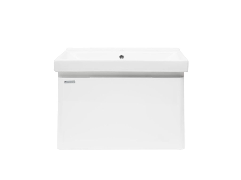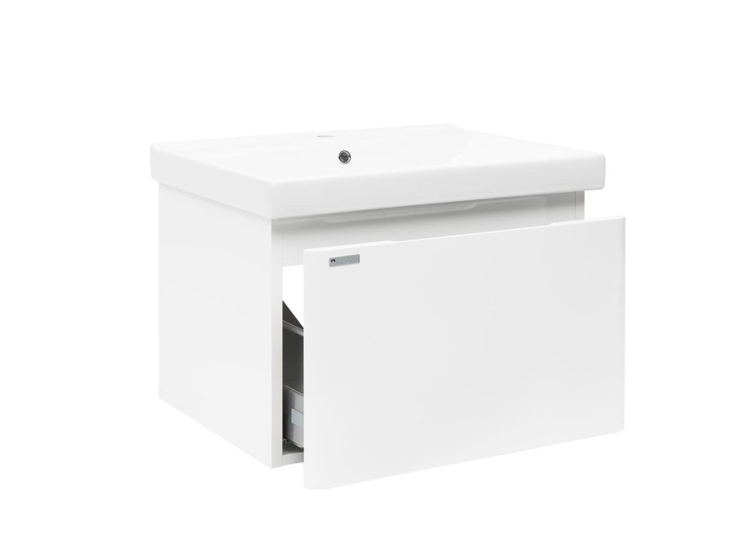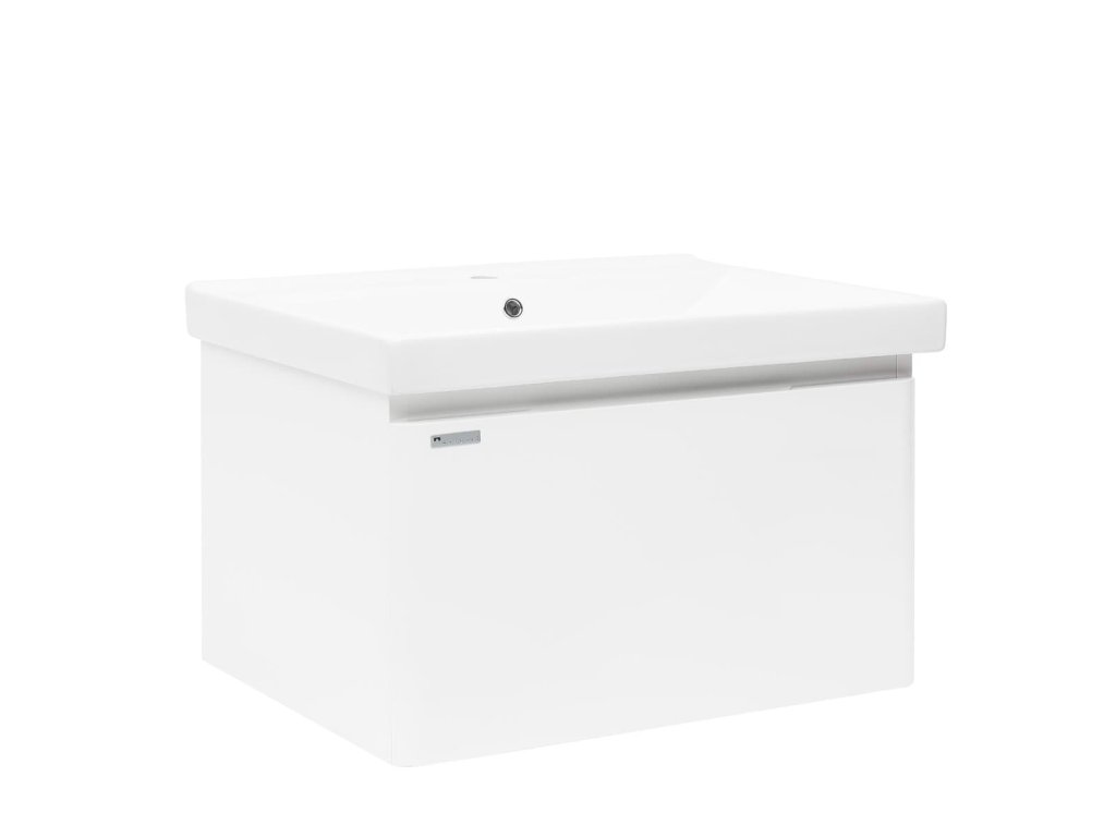 Závěsná koupelnová skříňka s keramickým umyvadlem v bílé barvě s lesklým povrchem o rozměru 80x46 cm. Povrch v provedení fólie.Doplňkové parametry