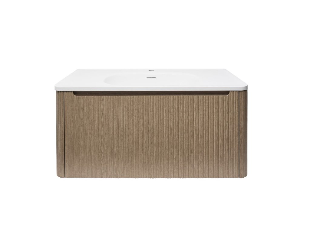 Závěsná koupelnová skříňka s umyvadlem z litého mramoru v barevném provedení clear brown s matným povrchem o rozměru 99x47,5x45 cm. Povrch v provedení fólie. S plnovýsuvem a dotahem.Doplňkové parametry