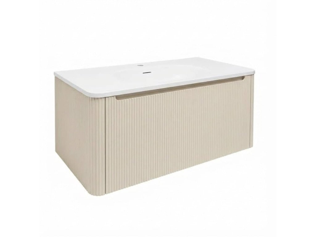 Závěsná koupelnová skříňka s umyvadlem z litého mramoru v barevném provedení light pine s matným povrchem o rozměru 99x47,5x45 cm. Povrch v provedení fólie. S plnovýsuvem a dotahem.Doplňkové parametry