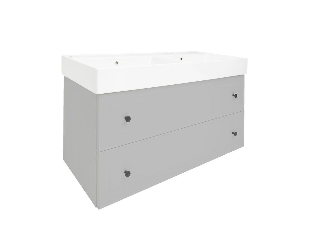 Závěsná koupelnová skříňka s keramickým umyvadlem v šedé barvě s matným povrchem o rozměru 120x53x46 cm. Povrch v provedení fólie.Doplňkové parametry