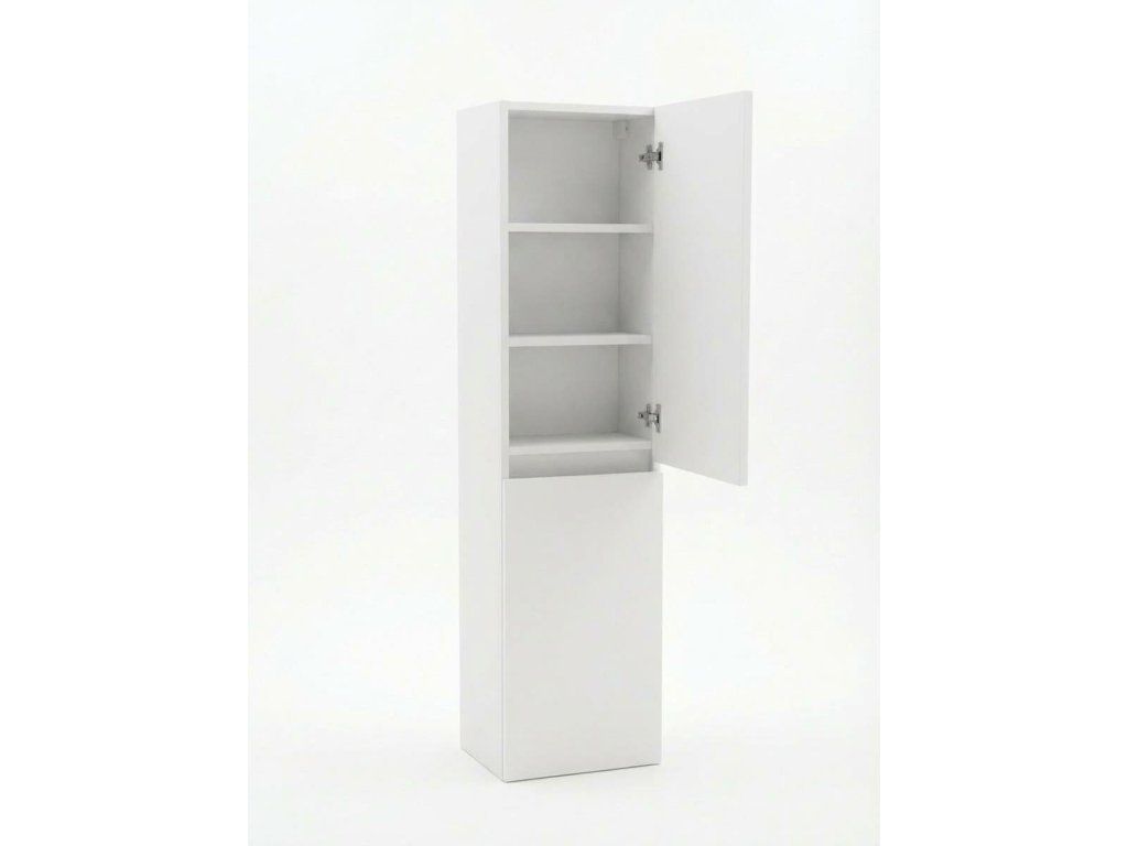 Závěsná vysoká skříňka v bílé barvě s lesklým povrchem o rozměru 40x157x21,8 cm. Povrch v provedení fólie. Dvířka mají levé i pravé otevírání.Doplňkové parametry