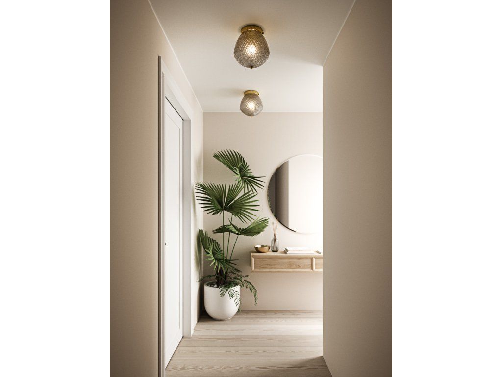 Kouzlo diamantového svitu Dodejte svému domu kouzlo exkluzivity díky světlu Orbiform, které v sobě kombinuje půvab broušeného skla a pětiúhelníkový tvar stínidla navrch ozdobený mosazným prvkem. Díky diamantovému vzoru získáte unikátní světelný efekt a slavnostní atmosféru. Lustr se dobře hodí do vstupních hal a chodeb ale i koupelen nebo všude tam, kde je málo prostoru pro závěsné světlo.Doplňkové parametry