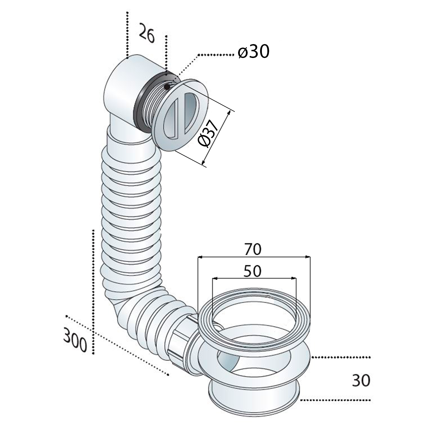 Umyvadlový přepad s odpadním mezikusem pro umyvadla z litého mramoru