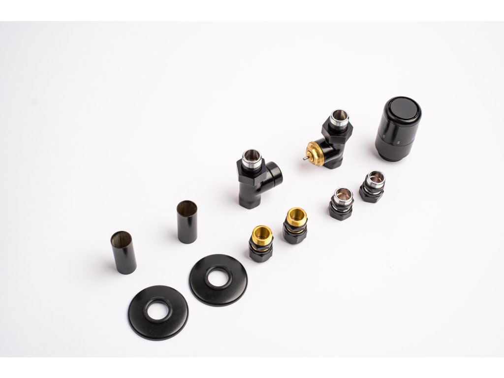 Kompletní sada obsahuje kromě ventilu také krycí rozety a svěrné šroubení pro připojení na měď 15 mm a Alupex 16 mm.