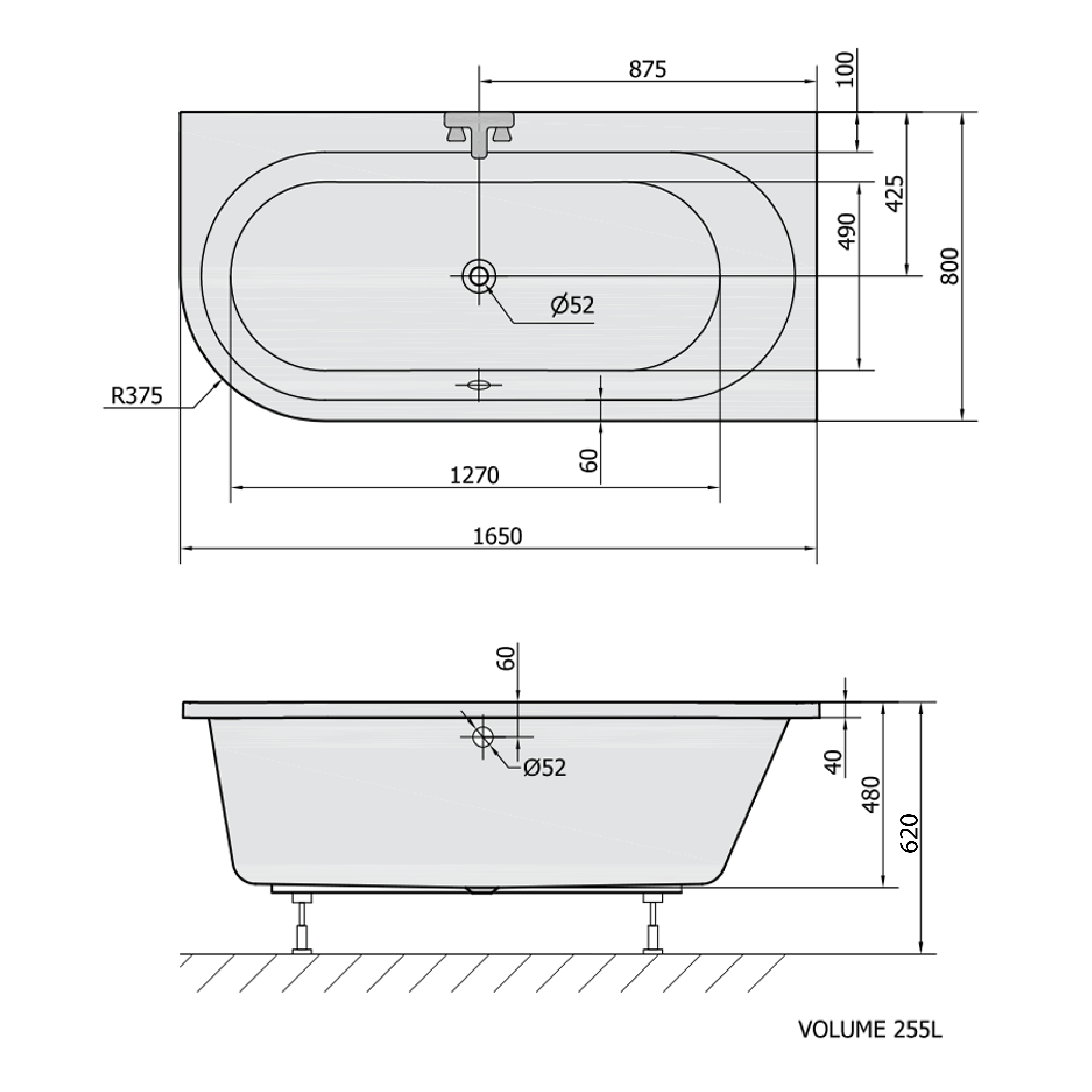 Polysan ASTRA R asymetrická vana 165x80x48cm, bílá 34611
