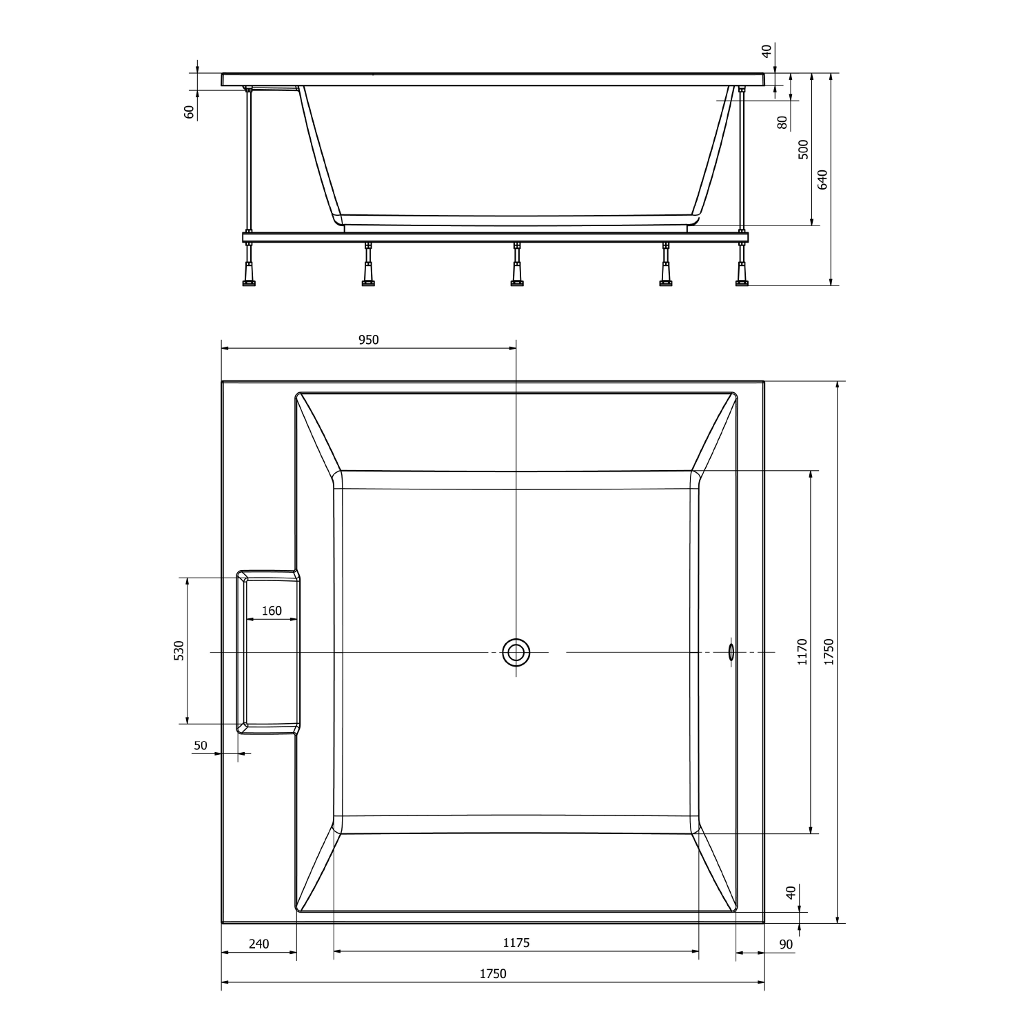 Polysan CAME čtvercová vana s konstrukcí 175x175x50cm, bílá 23611