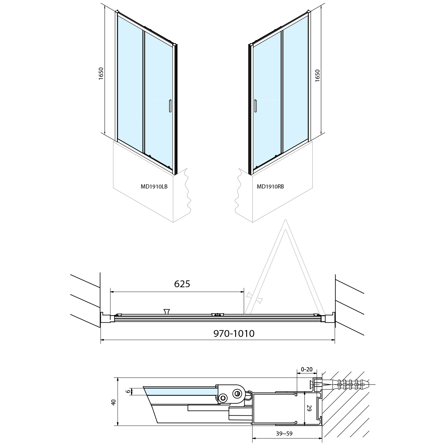 - Dveře jsou děleny na část posuvnou a část pevnou - umožňují variabilní instalaci s levým nebo pravým otevíráním