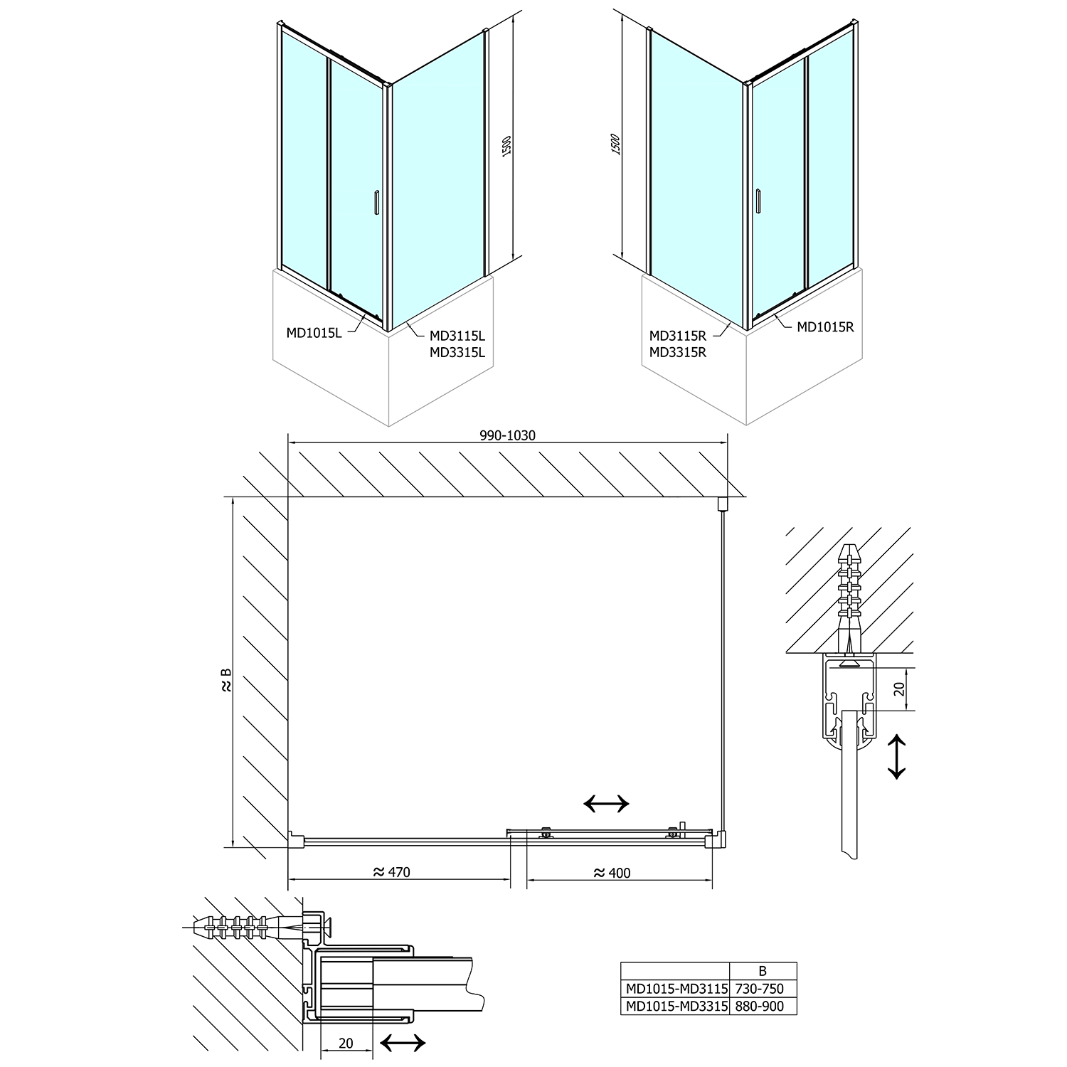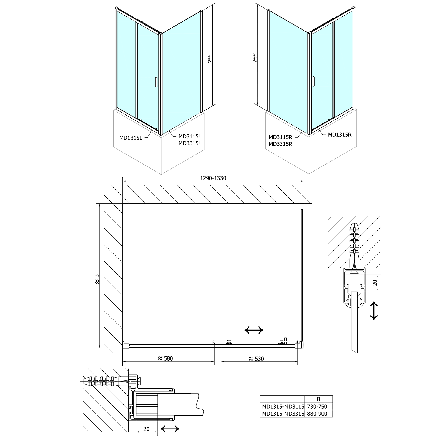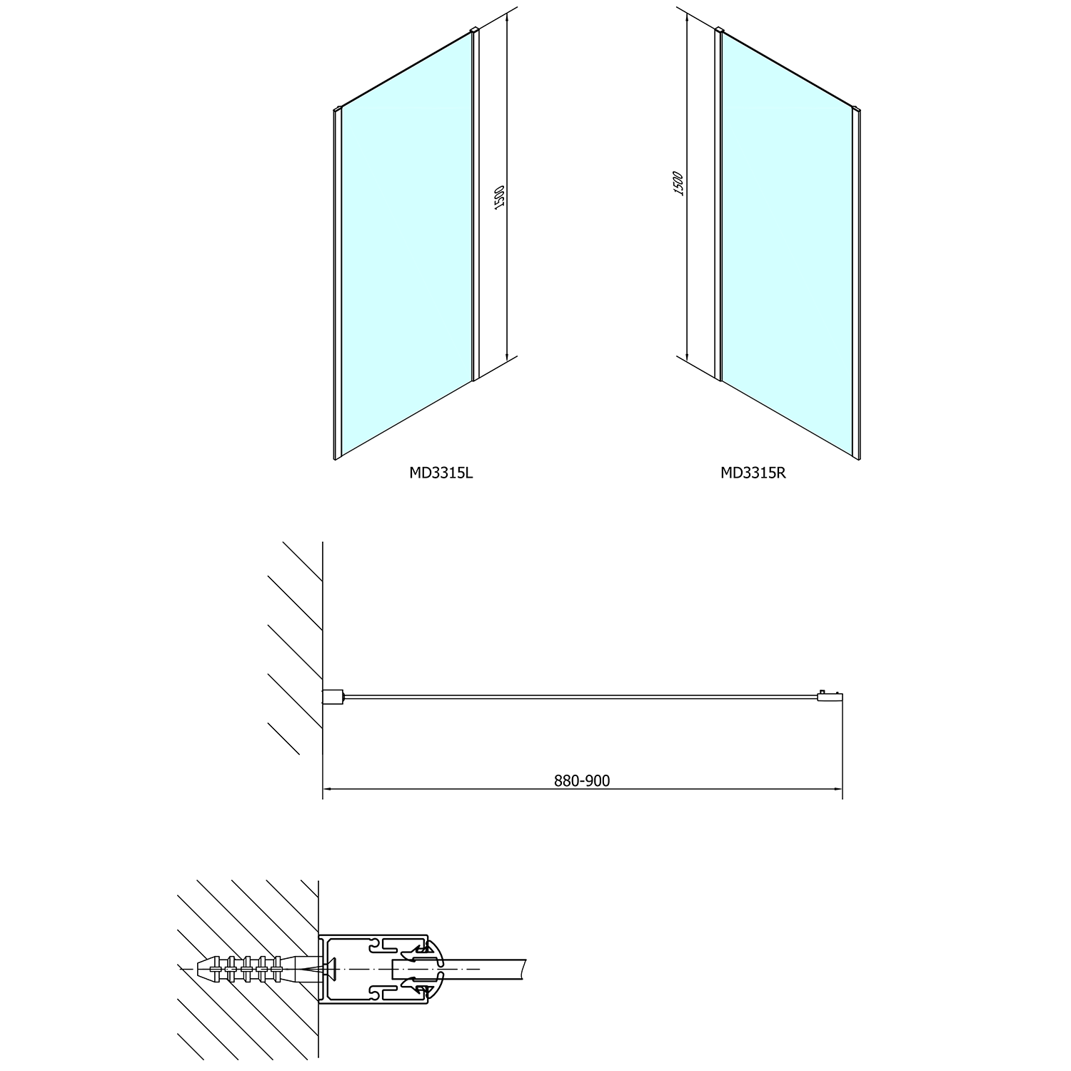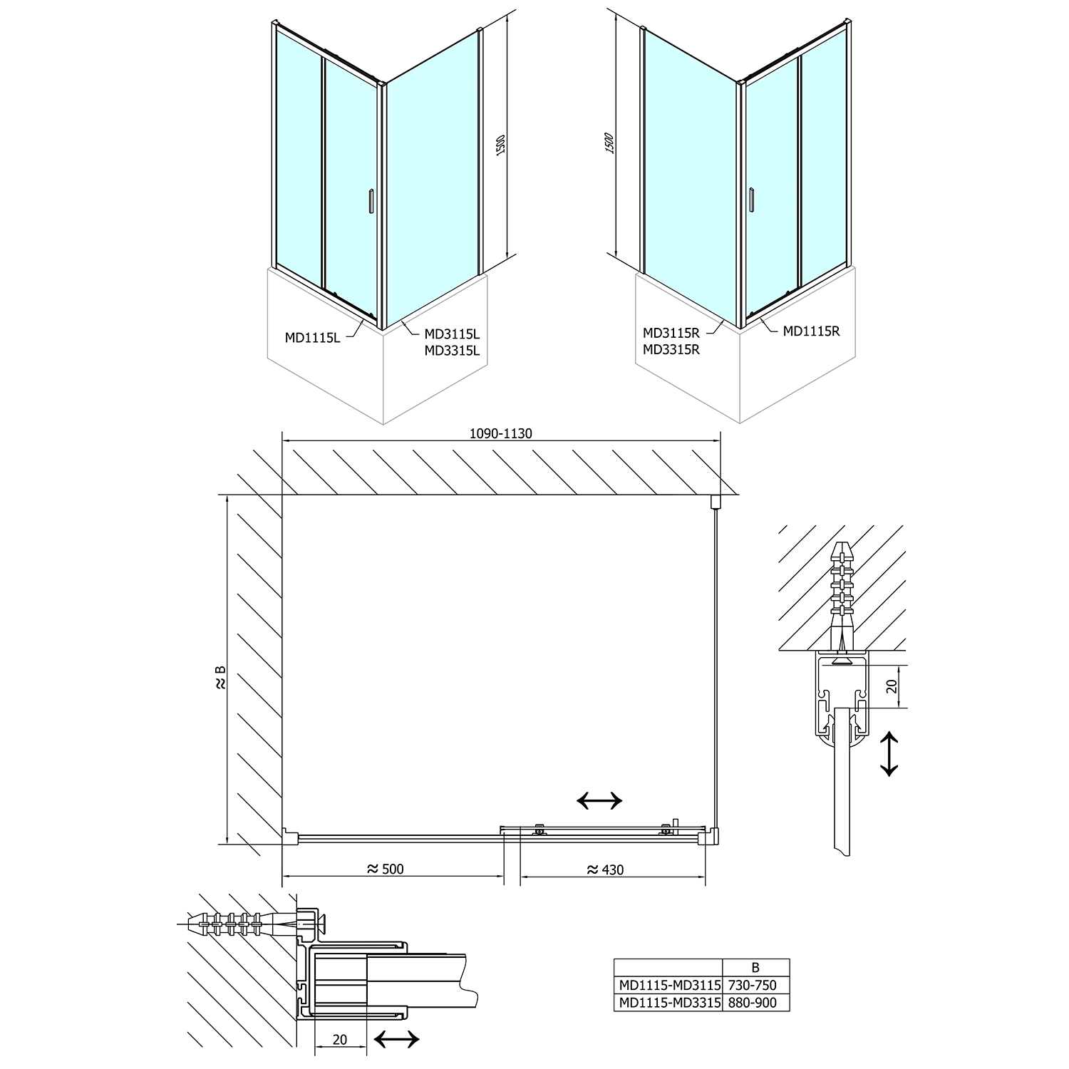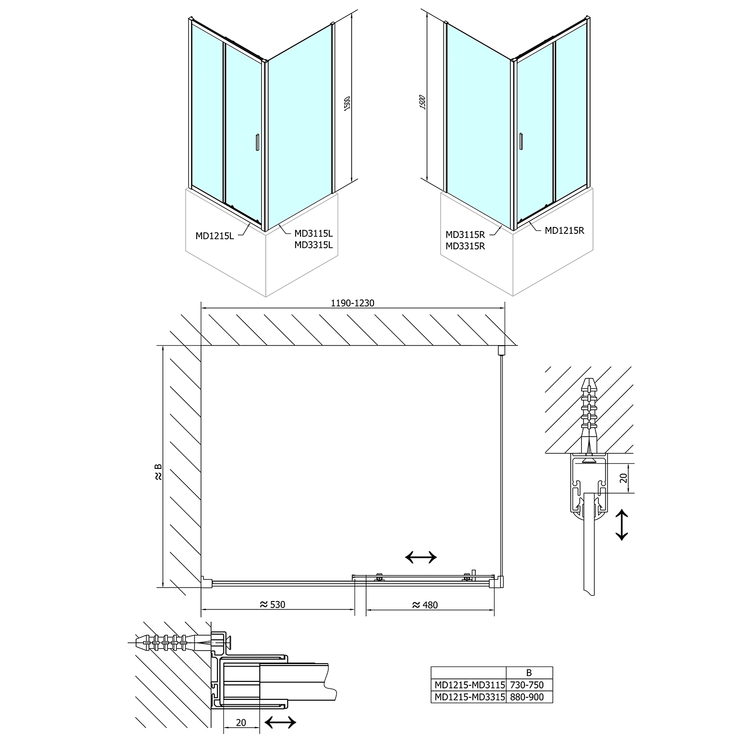 - Boční stěna pro instalaci s posuvnými dveřmi (získáte obdélníkovou zástěnu)