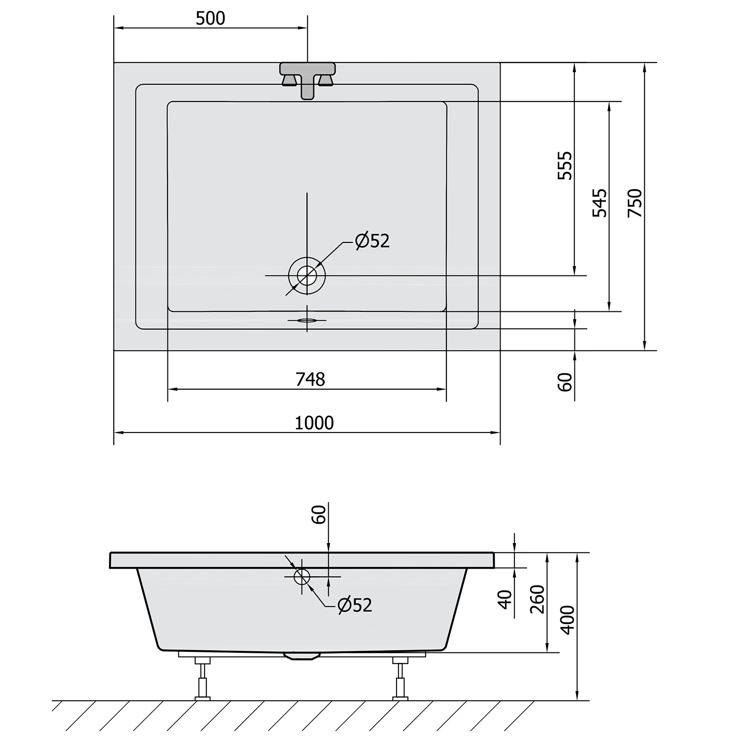 - V případě podezdění doporučujeme k vaničce zakoupit nohy (podstavec).