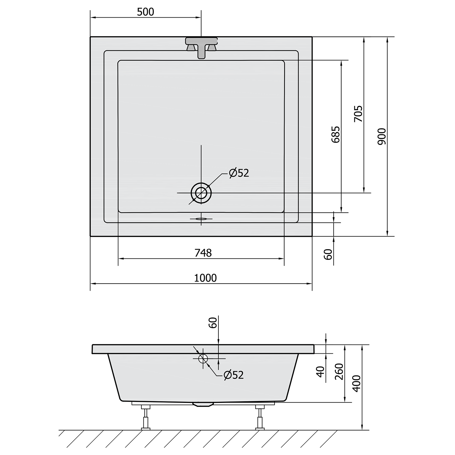 - Vaničku lze usadit na nožičky nebo nosnou konstrukci, vhodné typy jsou uvedeny u každé vaničky