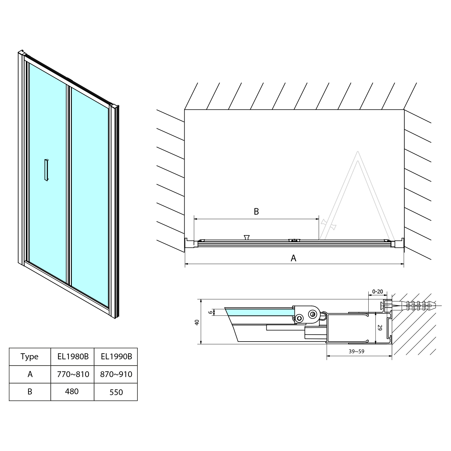 - Instalační rozměr dveří do niky lze díky rozšiřovacímu profilu EL825 zvětšit o 25 mm na každou stranu, celkem o 50 mm