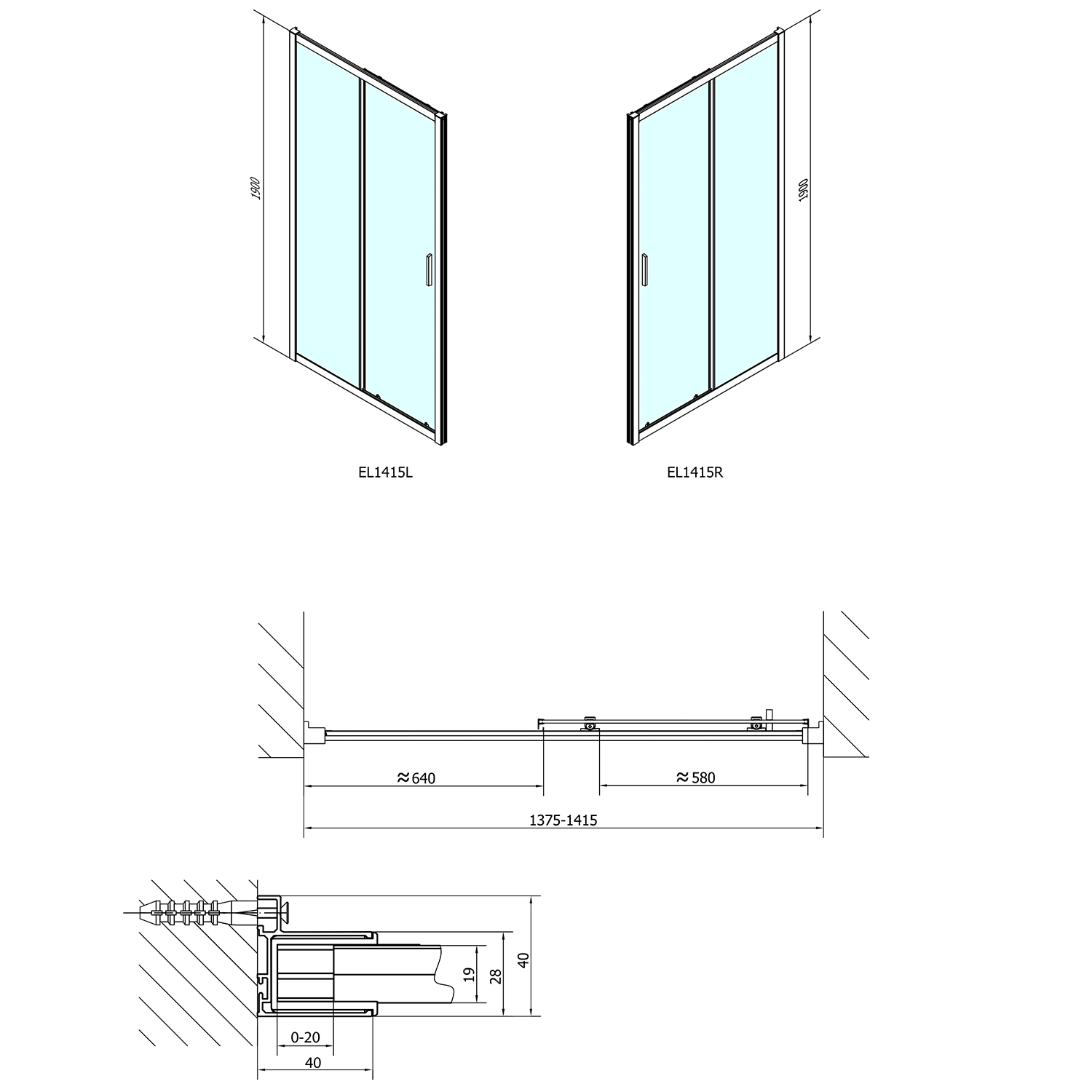 - Instalační rozměr dveří do niky lze díky rozšiřovacímu profilu EL825 zvětšit o 25 mm na každou stranu, celkem o 50 mm