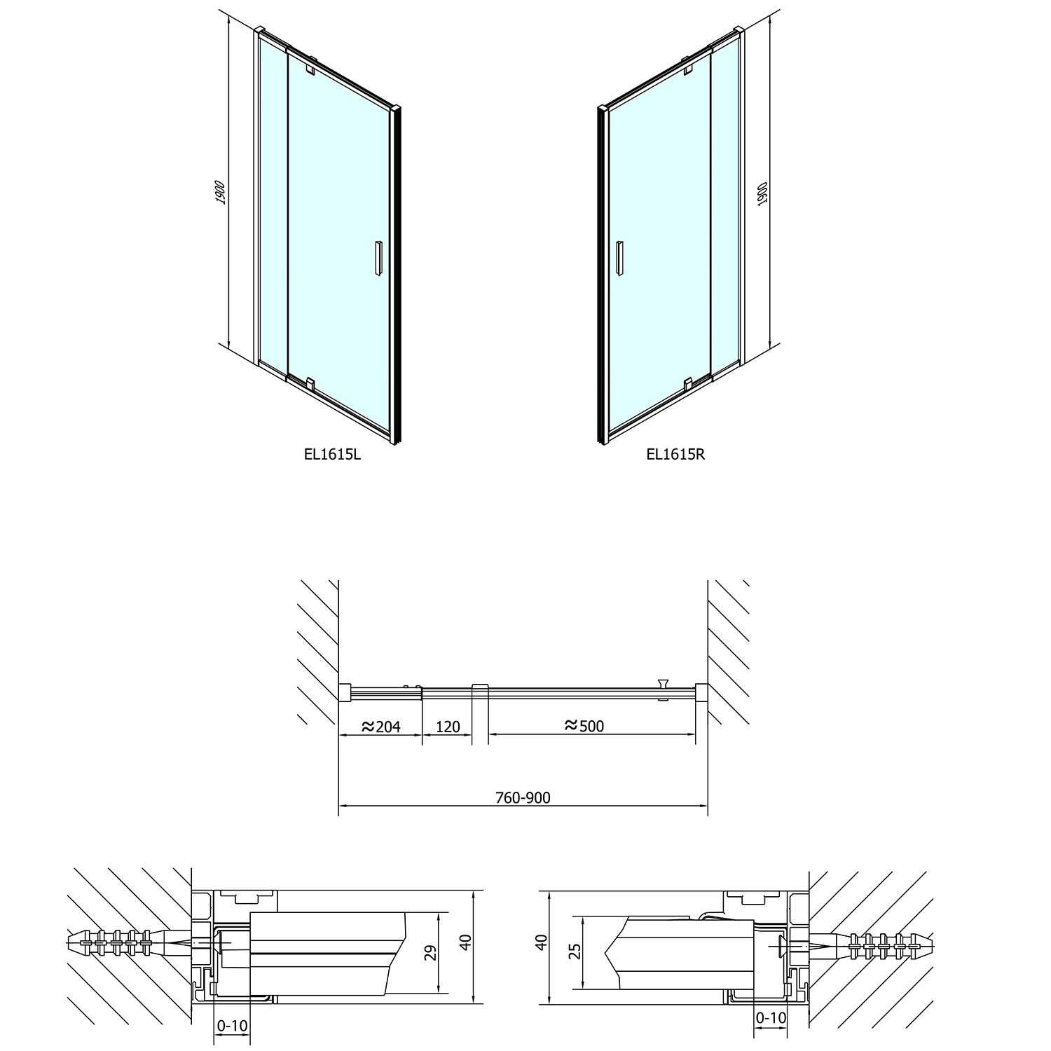 - Instalační rozměr dveří do niky lze díky rozšiřovacímu profilu EL825 zvětšit o 25 mm na každou stranu, celkem o 50 mm