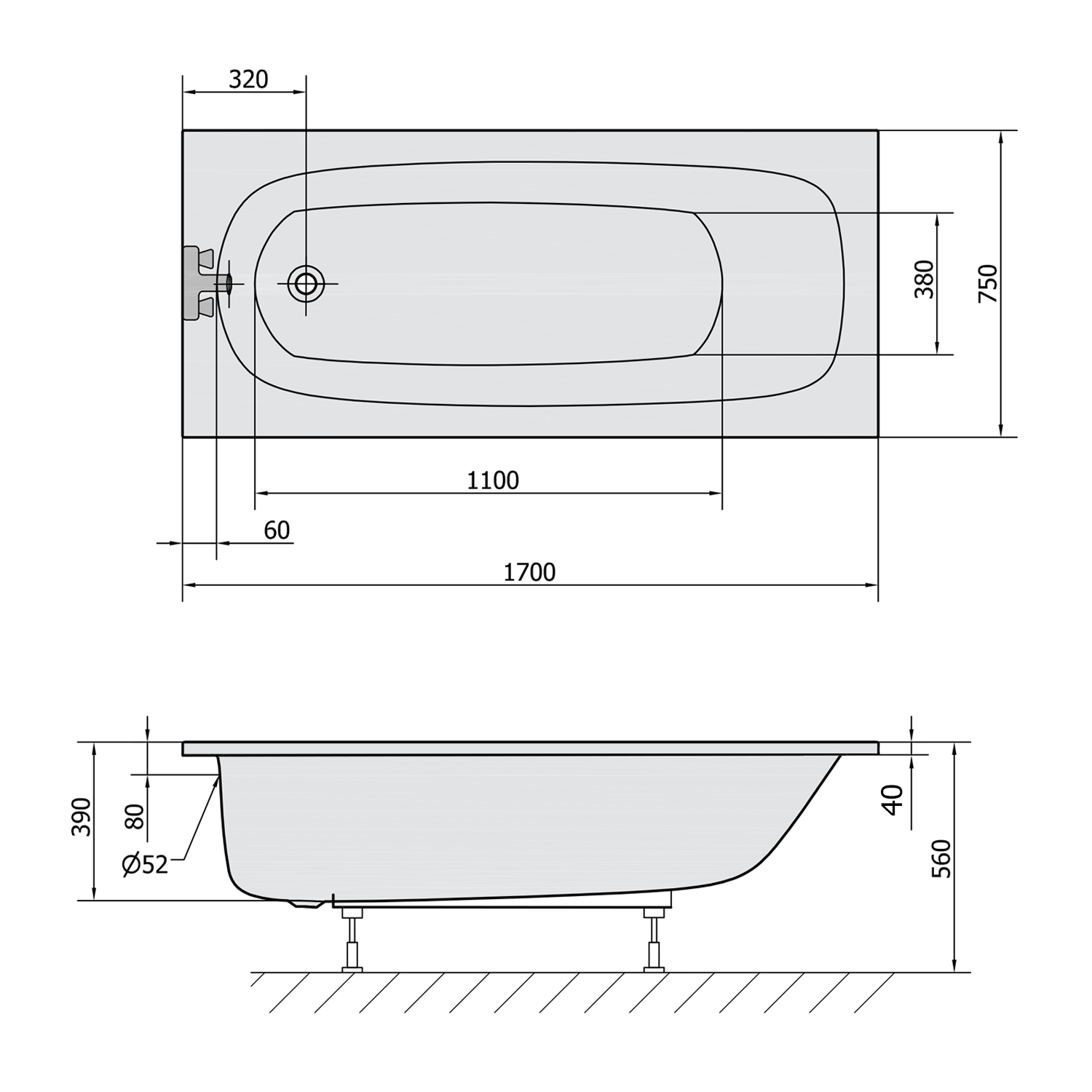 Polysan EBRO obdélníková vana 170x75x39cm, bílá 26711