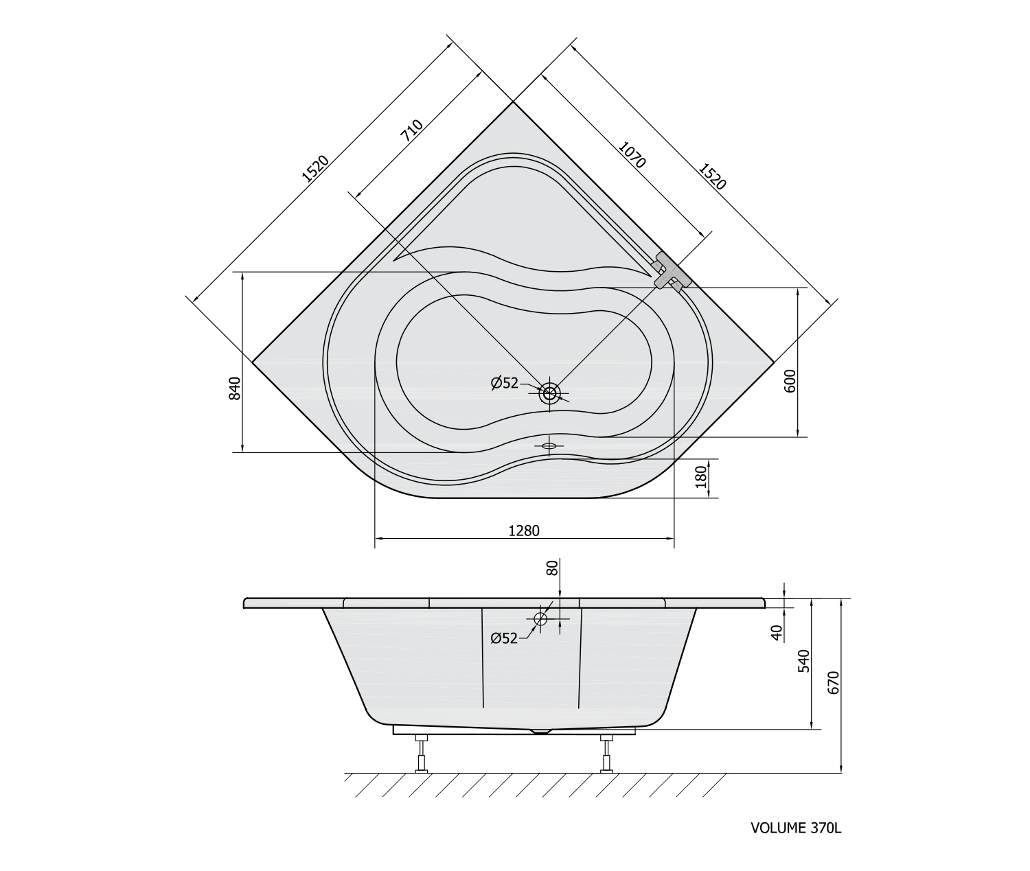 Polysan EDERA rohová vana 152x152x54cm, bílá 91111