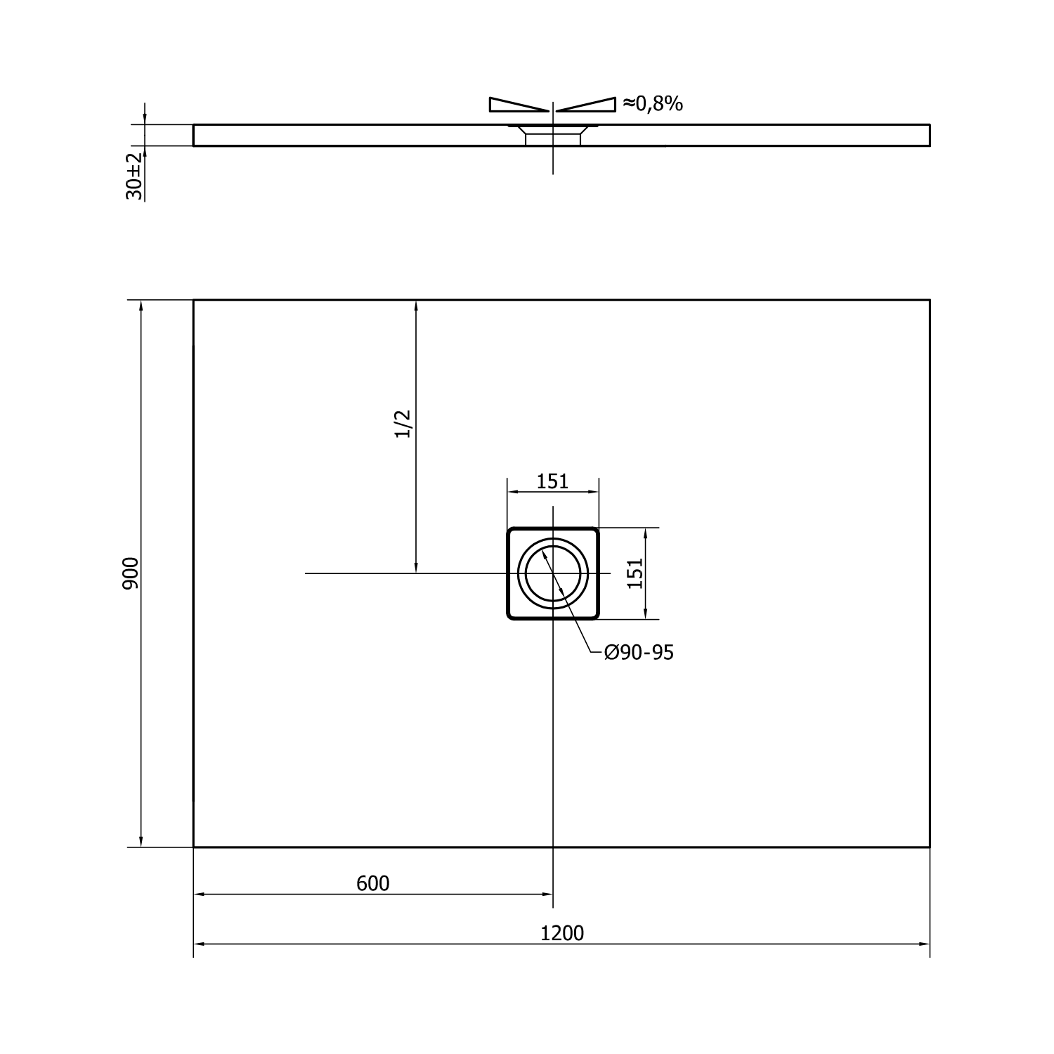 Umístění otvoru na sifon je pevně daný a nelze ho změnit. Okolo sifonu je, vzhledem k pevnosti podlahy, doporučeno případný řez vést minimálně 15 cm od středu sifonu.