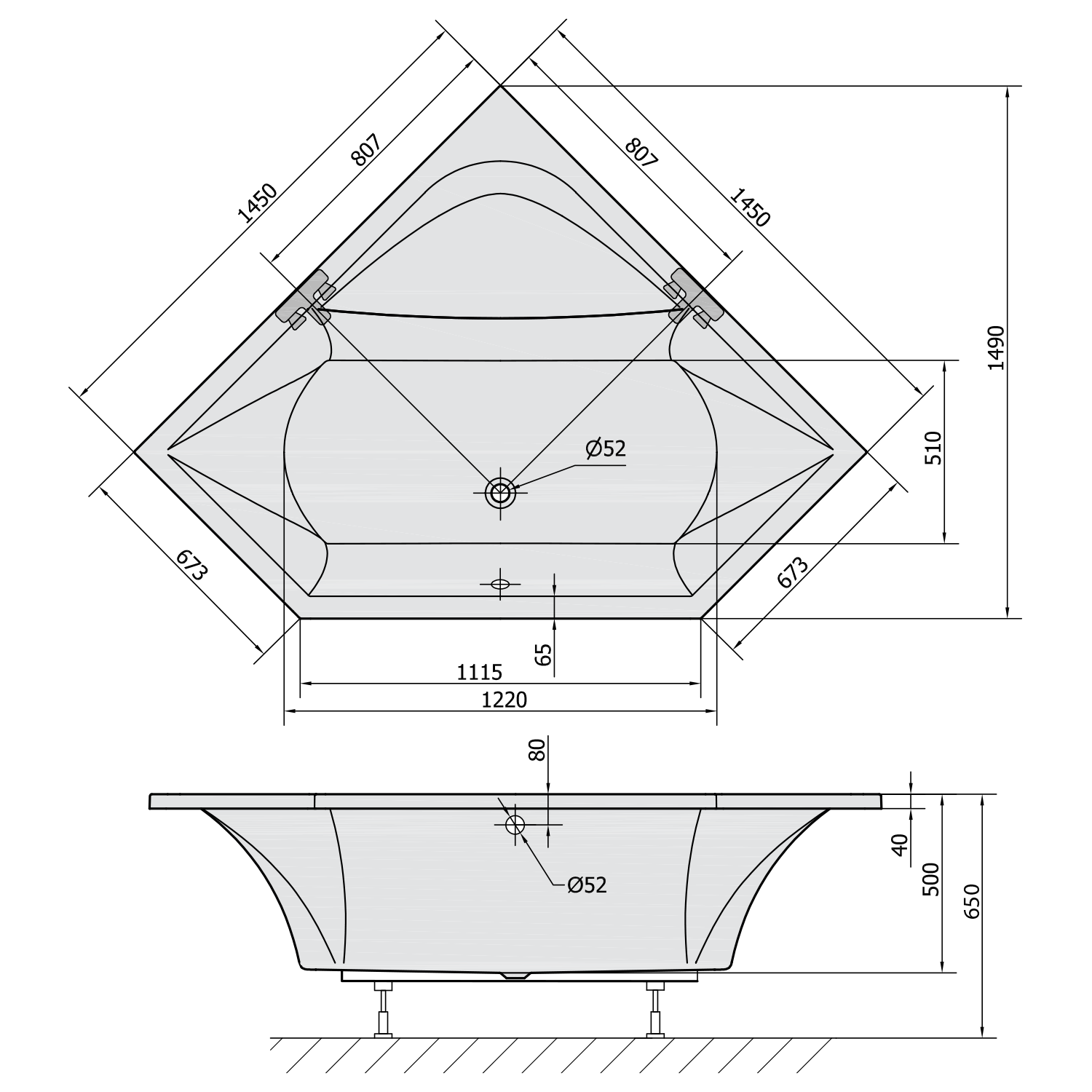 Polysan FLOSS rohová vana 145x145x50cm, bílá 98611