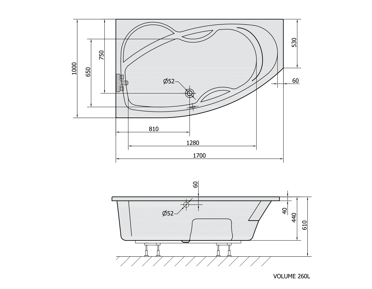 Polysan MAMBA L asymetrická vana 170x100x44cm, bílá 76111