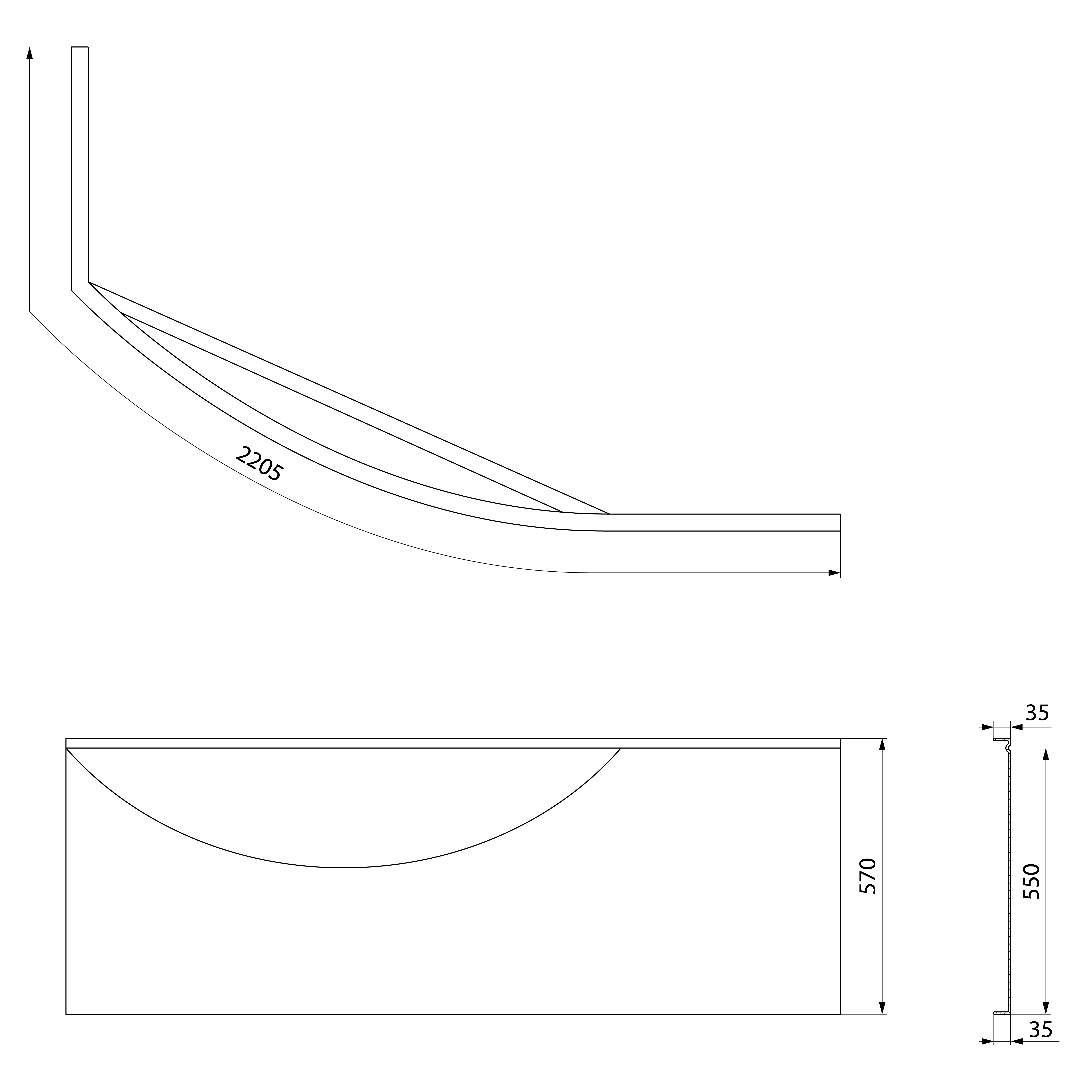 Rohový panel - pravý k vaně Mamba R 160. Zakrývá přední zaoblenou a nejkratší rovnou boční část vany.