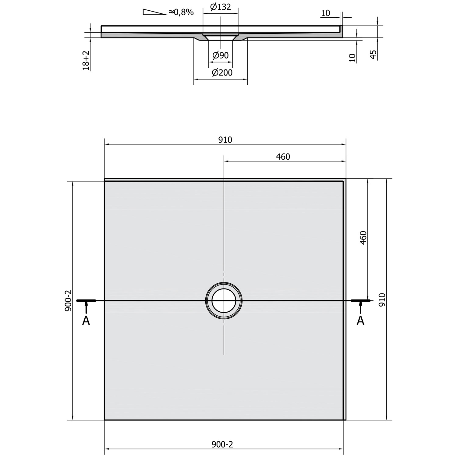 - Drážky na spodní straně umožňují vaničku nalepit přímo na podlahu. Díky nízké výšce 18 mm lze dlažbu nalepit do stejné roviny s vaničkou.