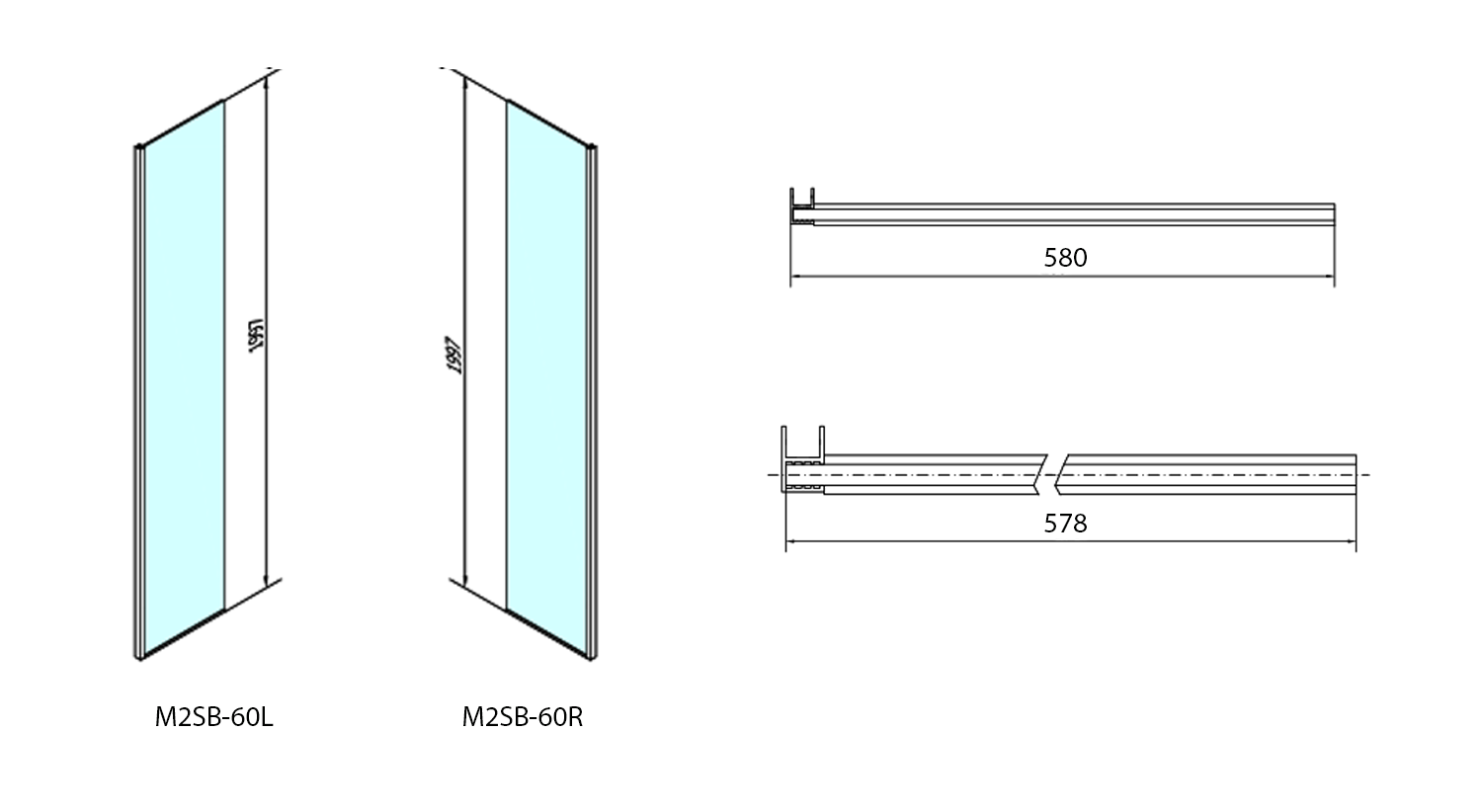 Polysan MODULAR SHOWER pevný panel k instalaci na stěnu modulu MS2, 600 mm, pravý MS2B-60R