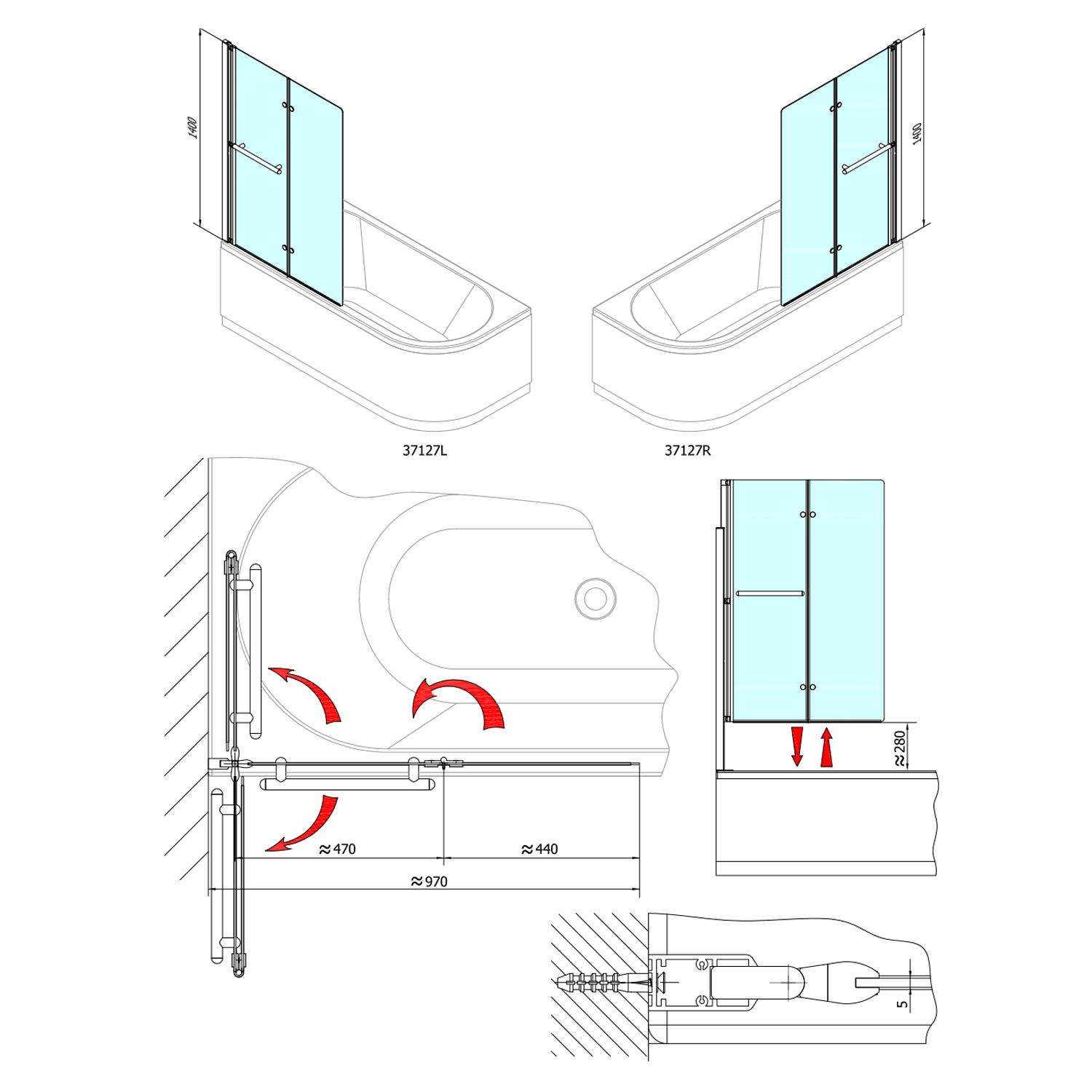Polysan ODESSA vanová zástěna s pneumatickým zdvihem, š. 970mm, stříbrná, čiré sklo 37127