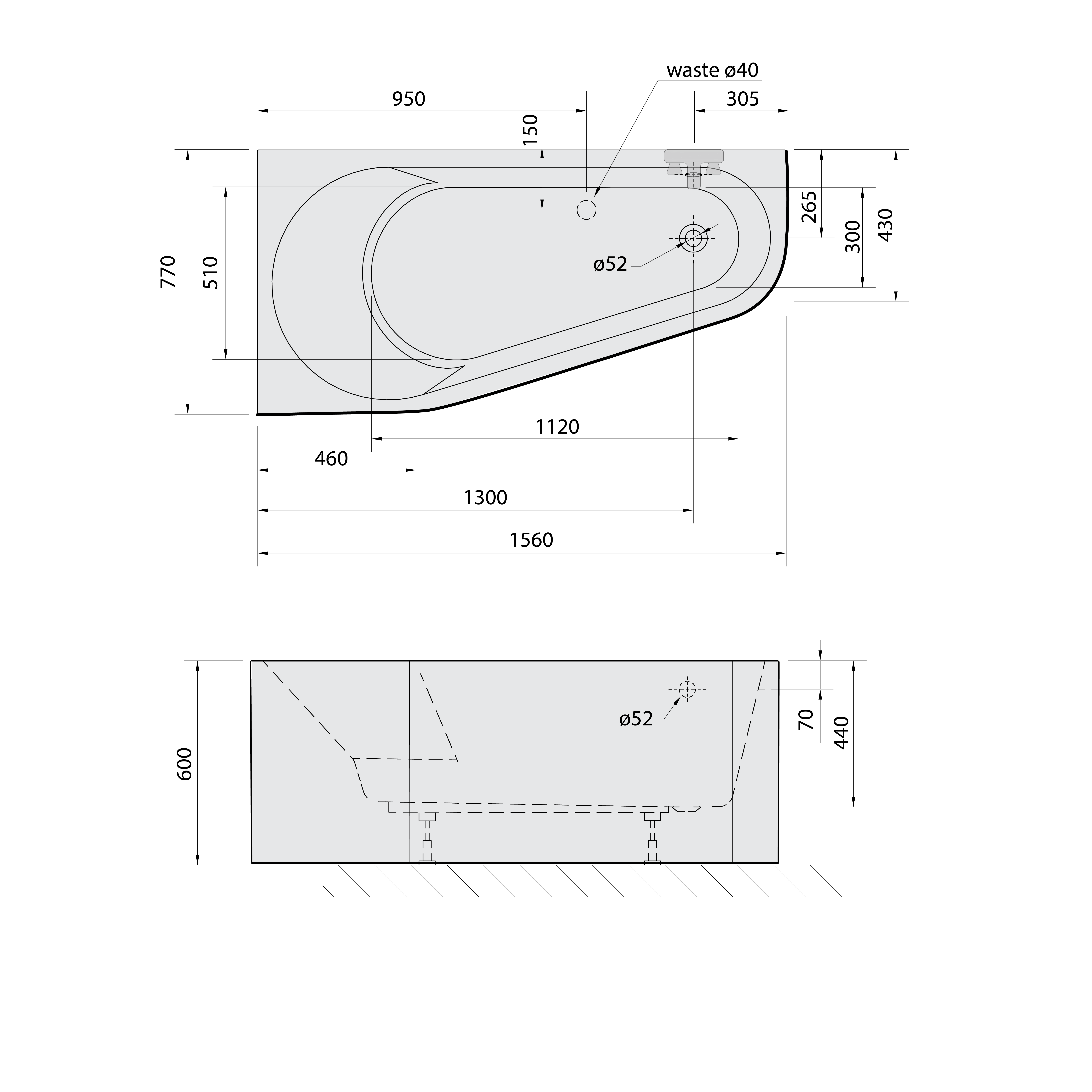 Polysan PROJEKTA L MONOLITH asymetrická stojící vana 156x77x60cm, bílá 20111M