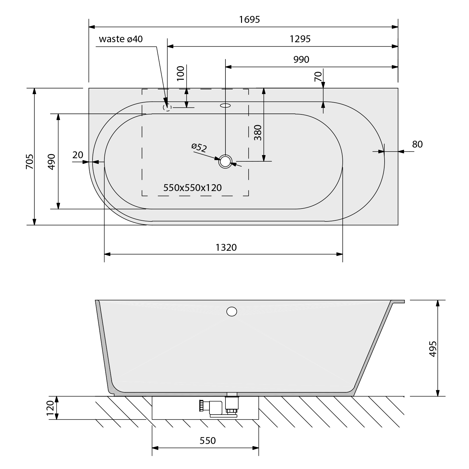 - Sifon je nutno zapustit do podlahy.