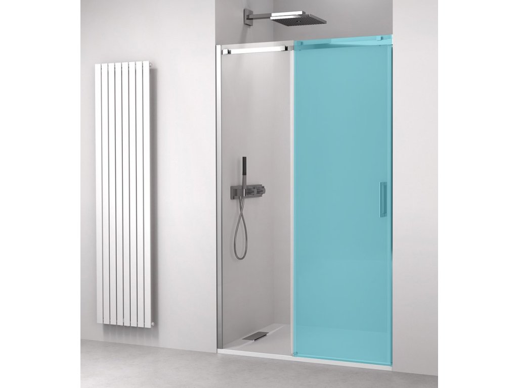 - Sklo dveří je volně zavěšené bez spodního vodícího profilu