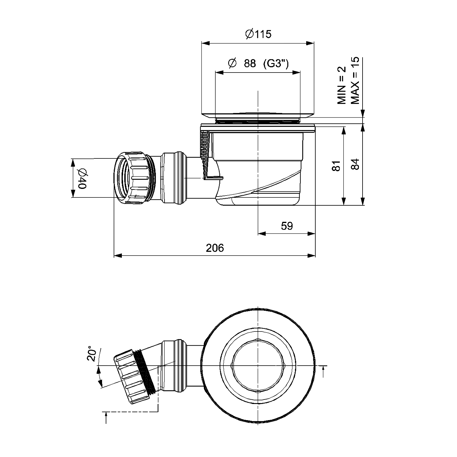 Polysan Vaničkový sifon, průměr 90mm, DN40, odtok v mezikruží, krytka bílá 17924W