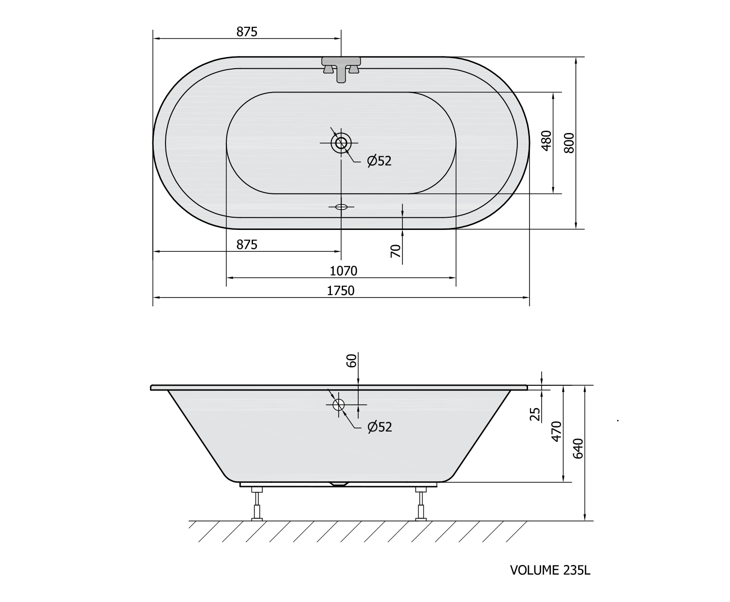 Polysan VIVA O oválná vana 175x80x47cm, bílá 79119
