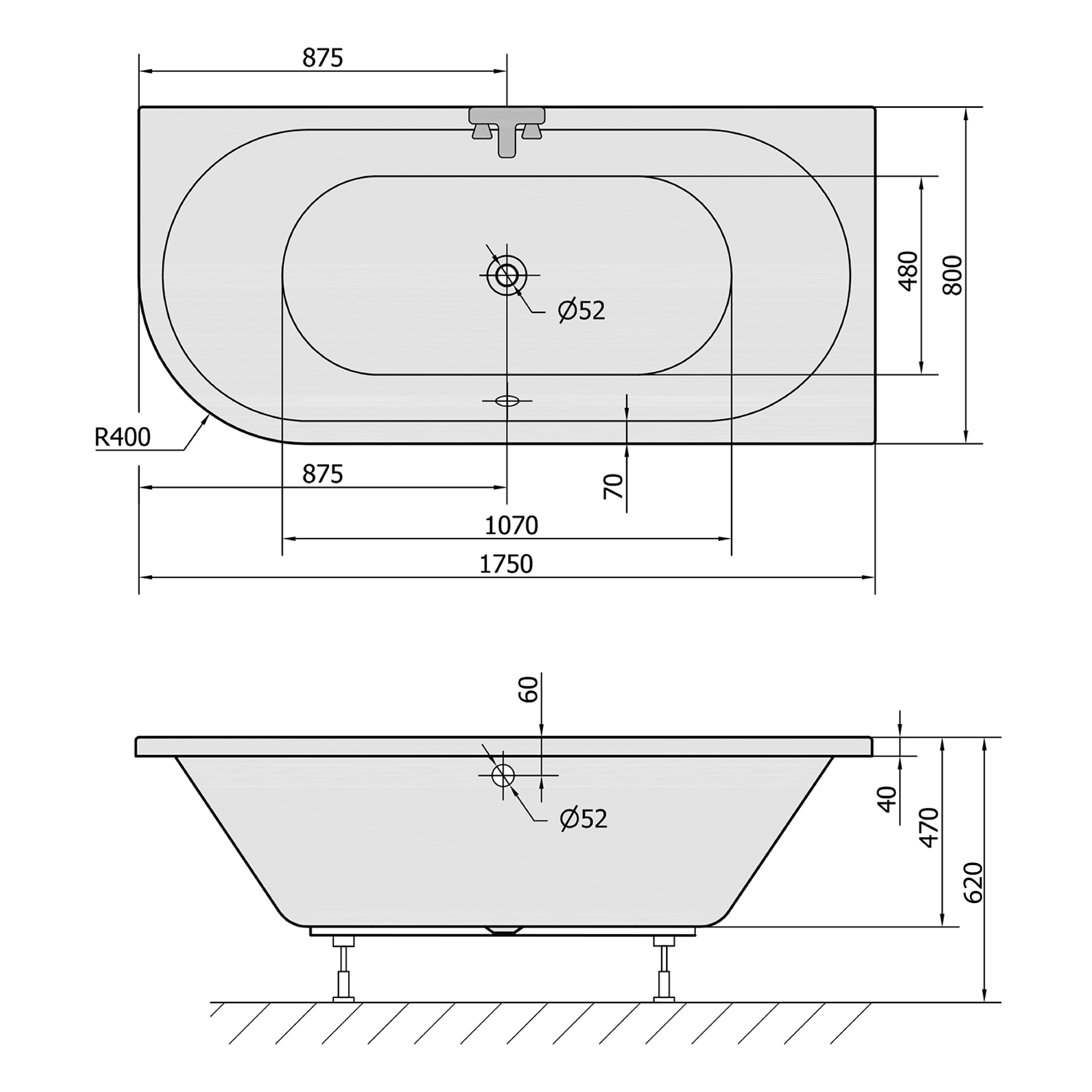 Polysan VIVA R asymetrická vana 175x80x47cm, bílá 78119