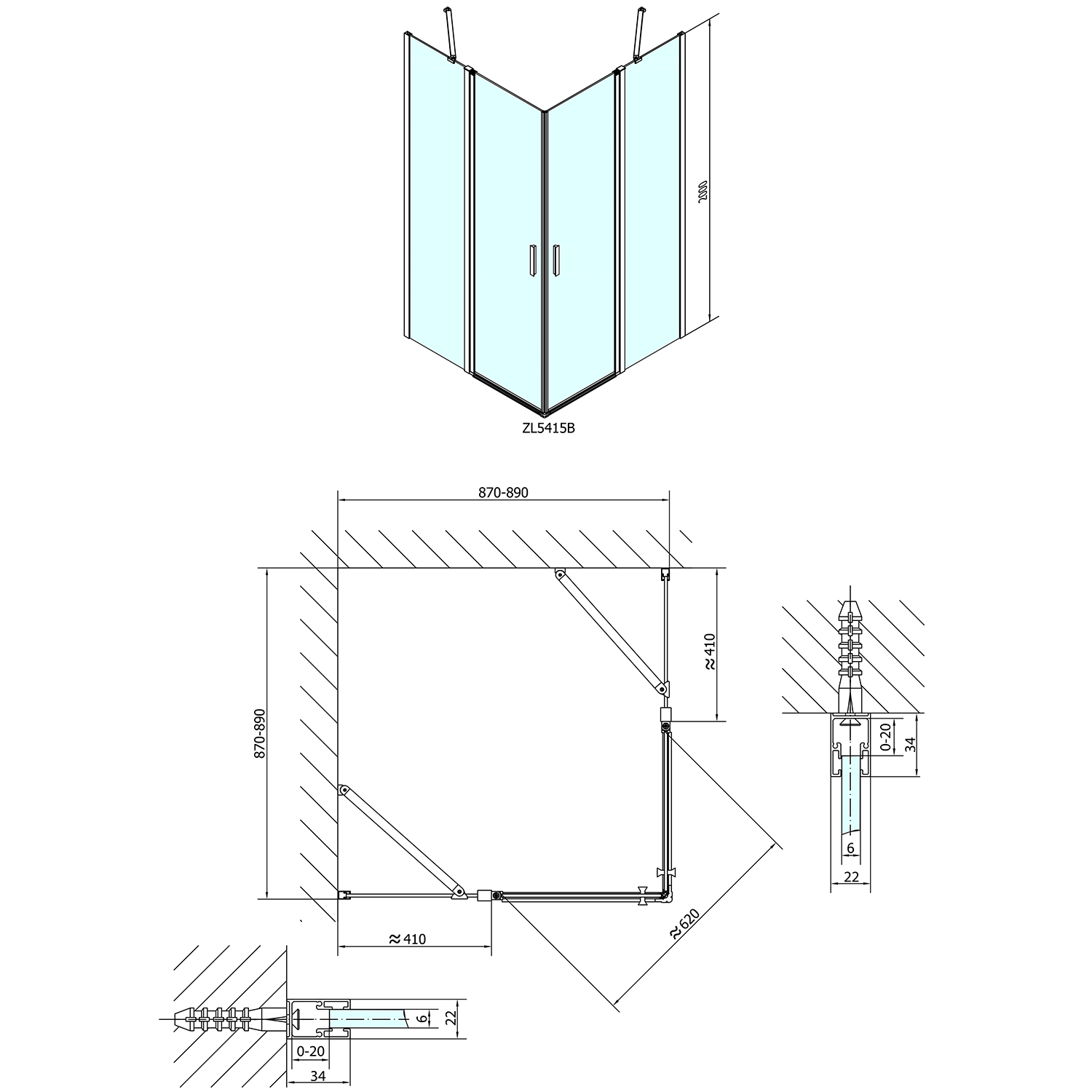 - Skládací dveře 700 až 900 mm v provedení levá a pravá lze instalovat do niky nebo v kombinaci L/R vytvořit čtvercovou nebo obdélníkovou zástěnu s rohovým vstupem