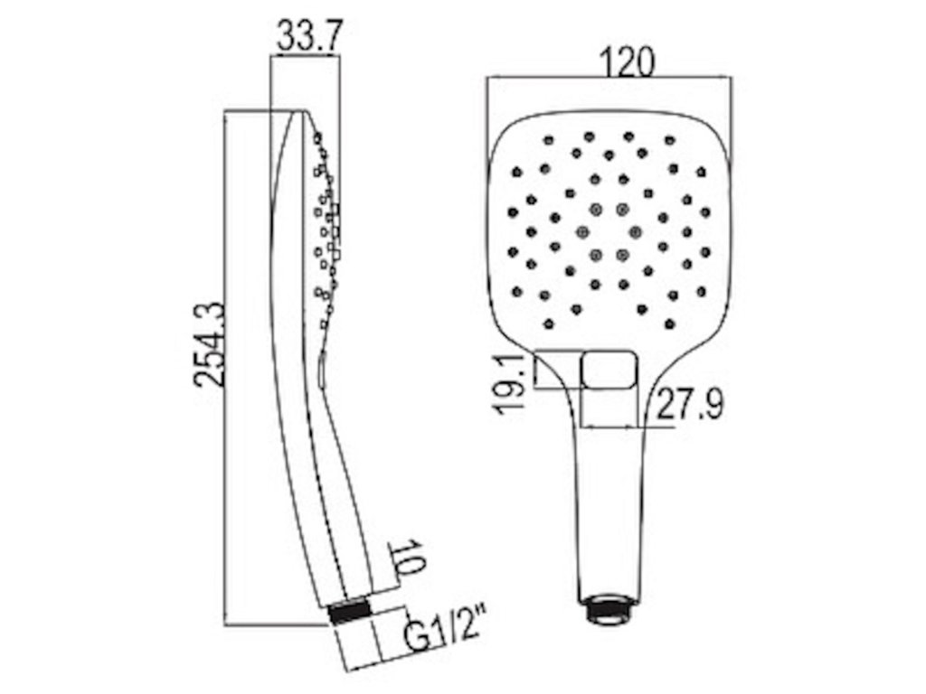 Set hadice a sprchové hlavice se 3 funkcemi s průměrem 12cm. V hranatém designu.Doplňkové parametry
