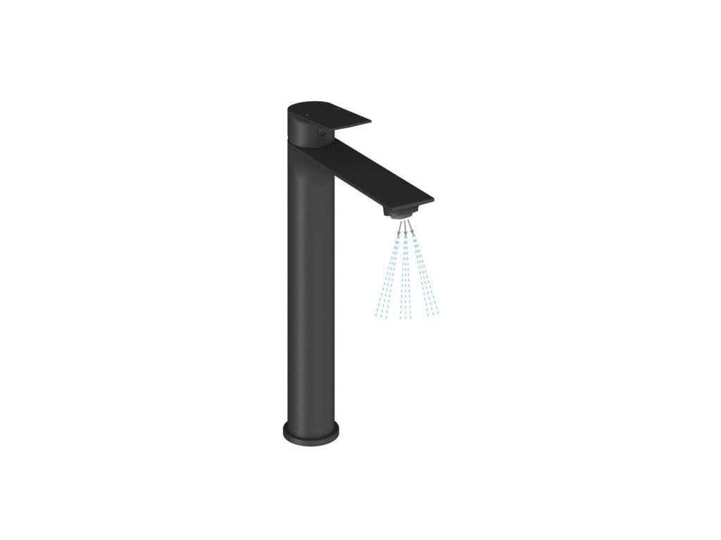Páková stojánková vysoká umyvadlová baterie bez výpusti v černé barvě. Průtok baterie je 4,5 litrů/minutu. Výška baterie je 30 cm. Ramínko je ve výšce 24,5 cm. S matným povrchemDoplňkové parametry
