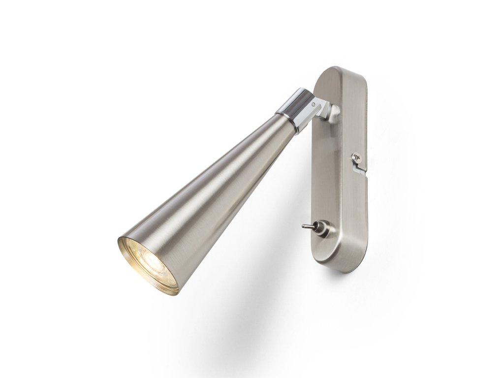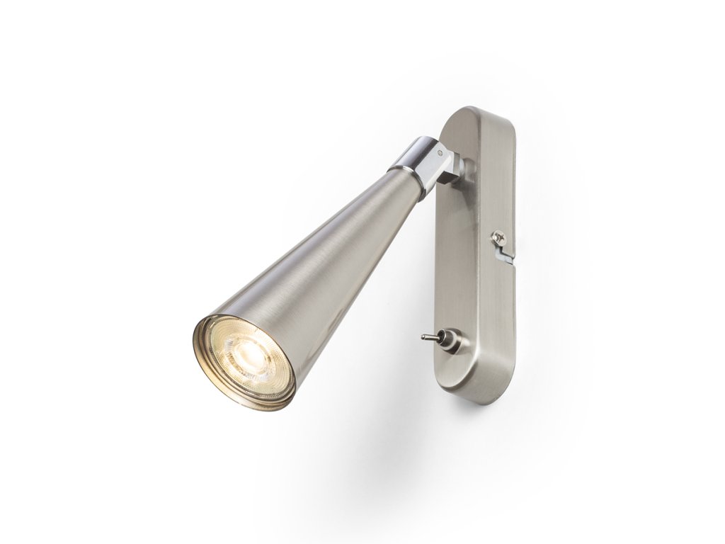 Nástěnné svítidlo s kónickým reflektorem pro LED žárovku s paticí GU10, páčkový vypínač je umístěný na základně.Doplňkové parametry