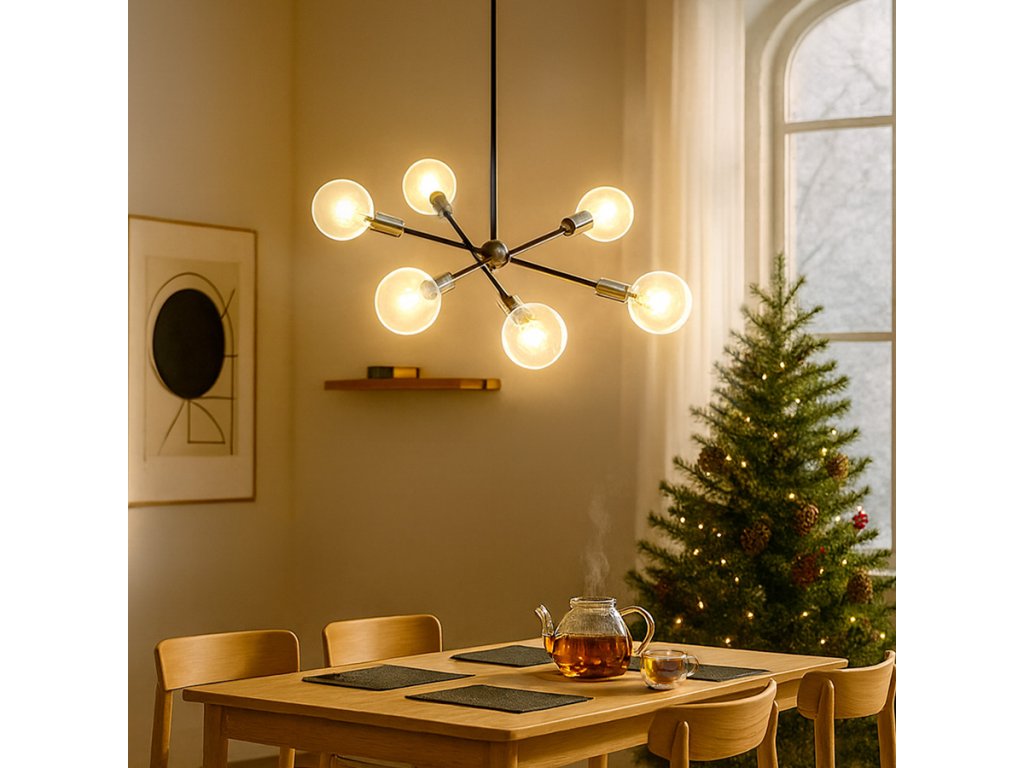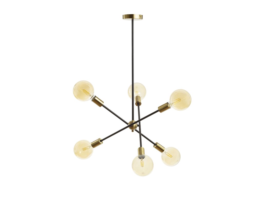 Závěsné designové svítidlo na tyči s ozdobnými mosaznými krytkami objímek. Svítidlo je možné tvarovat nastavením ramen. Vhodné pro LED světelné zdoje s paticí E27.Doplňkové parametry