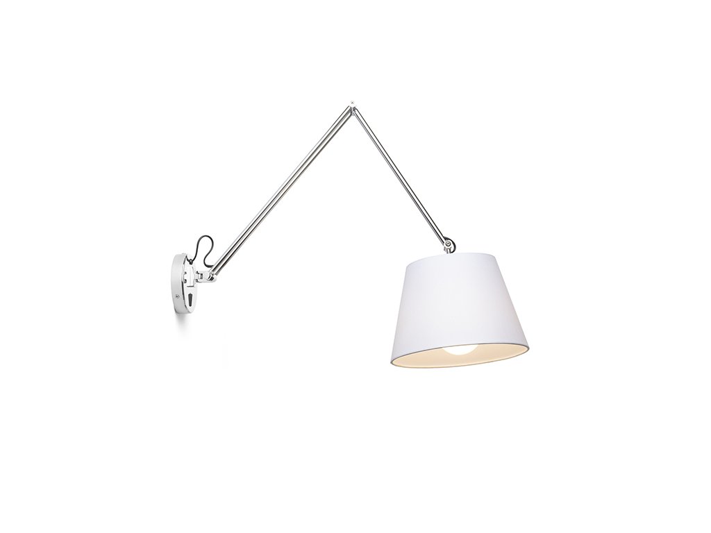 Nástěnná dvojramená lampa s textilním stínidlem a vypínačem na základně.Doplňkové parametry