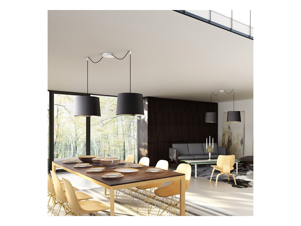 Textilní stínidlo pro objímky E27. Vhodné pro instalaci na závěsnou sadu. Vhodné doplňky: HEX, ELISA, ENZO, KOMBIX, LISA, POSTE, TRIX.Doplňkové parametry