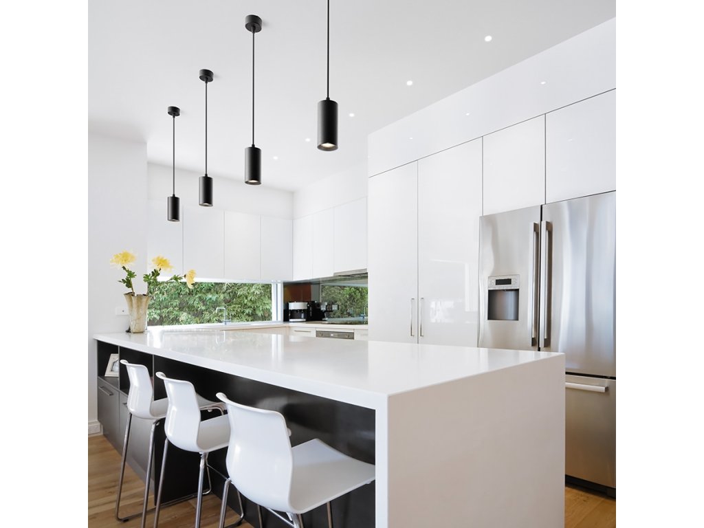 Jednoduchý závěsný válcový reflektor s paticí GU10. Pružinový úchyt patice umožňuje použití žárovek různých délek.Doplňkové parametry