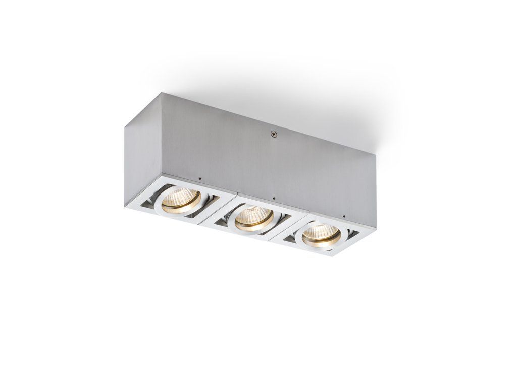 Hranaté stropní svítidlo z hliníku se zapuštěnými dichroidními žárovkami. Světelné zdroje lze naklápět ve dvou osách.Doplňkové parametry