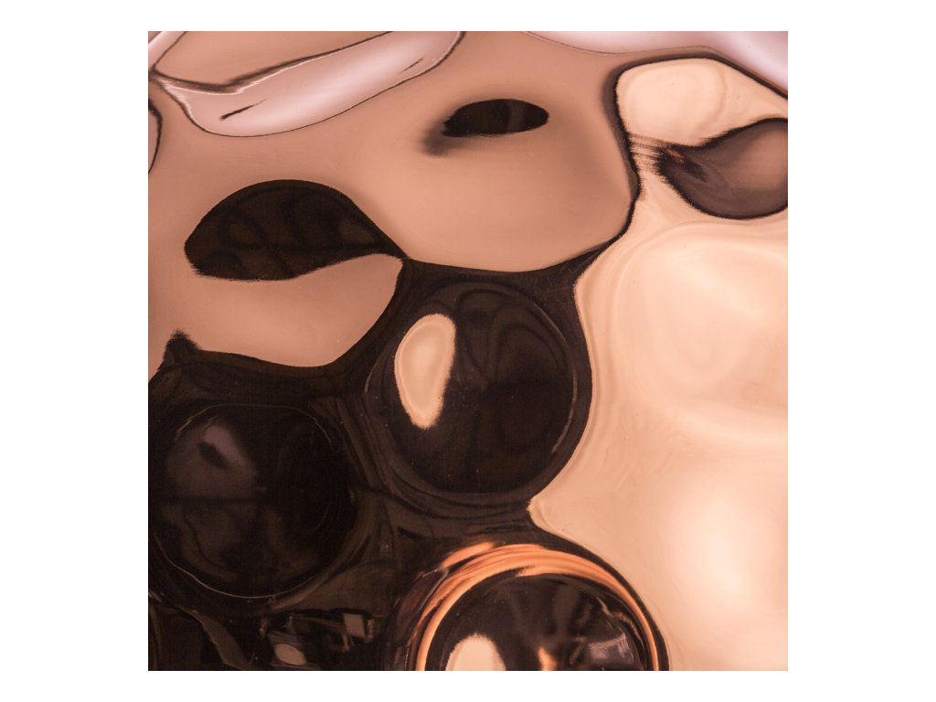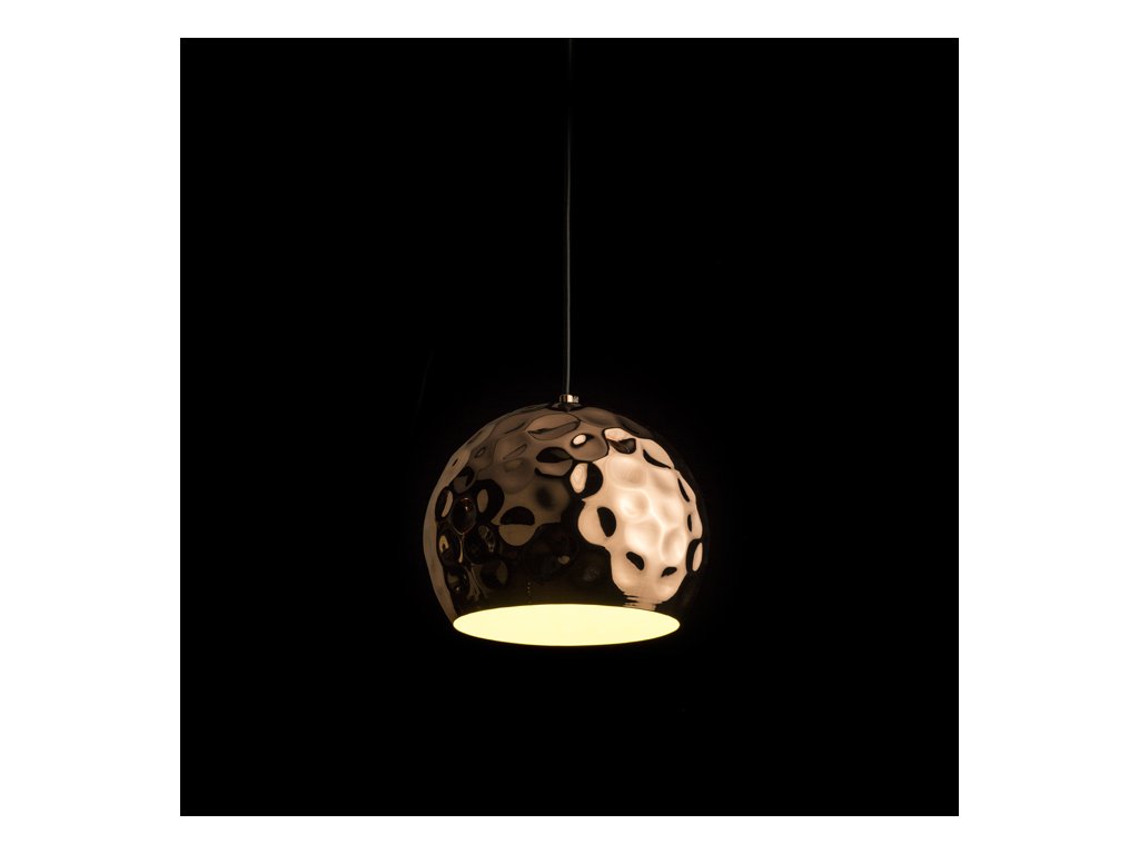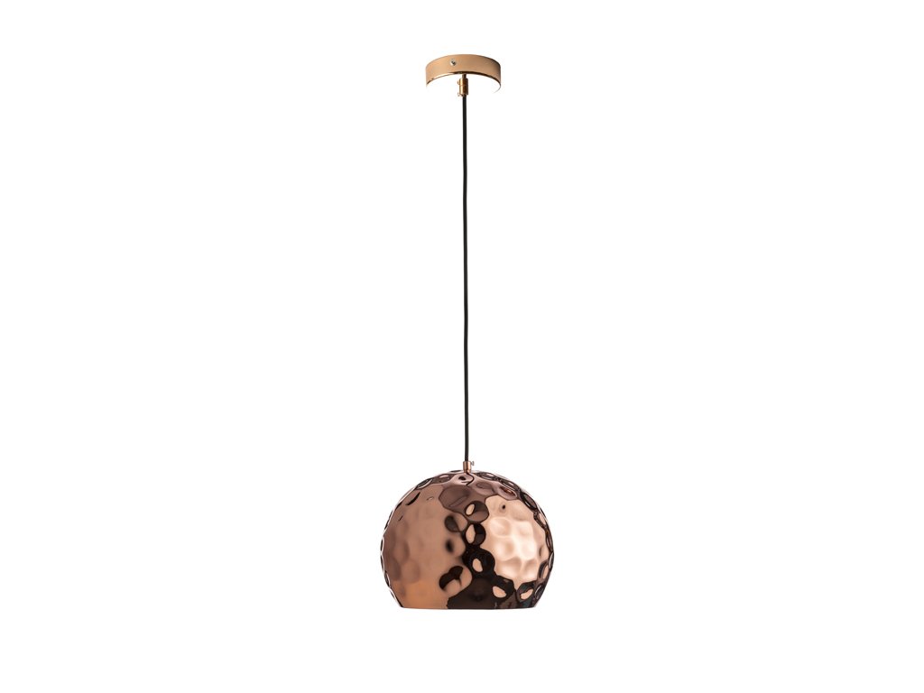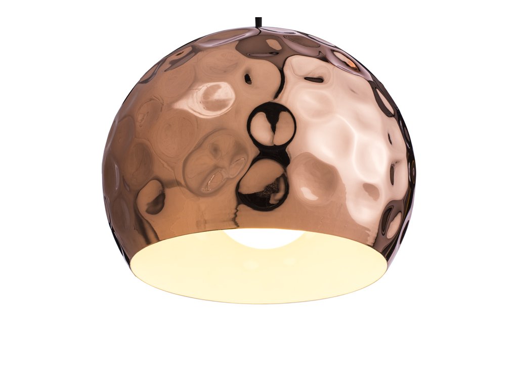 Závěsné svítidlo s promačkávaným kovovým stínidlem. Vnější strana stínidla je měděná, vnitřní strana je bíle lakovaná. Včetně černého PVC kabelu a měděné stropní krytky.Doplňkové parametry