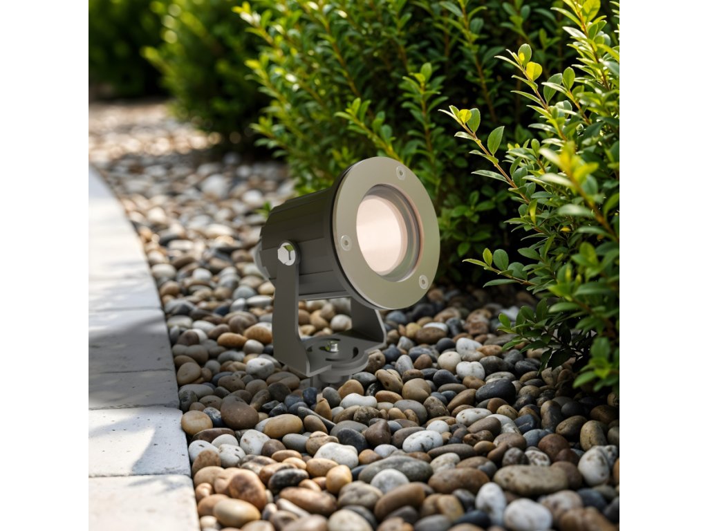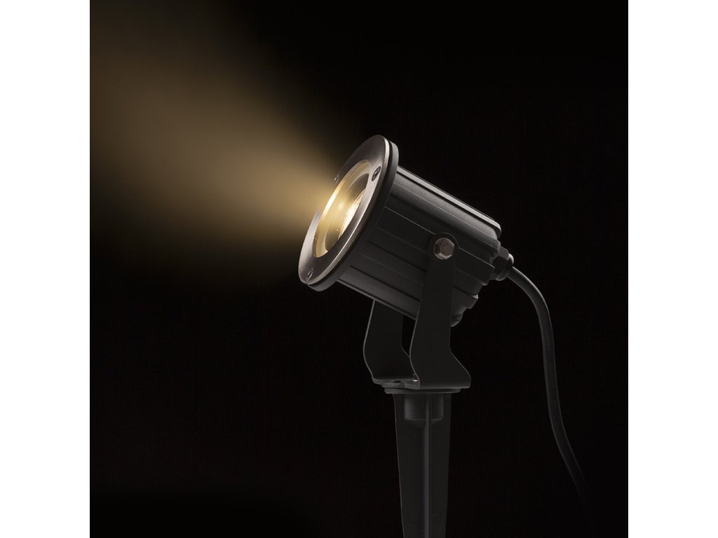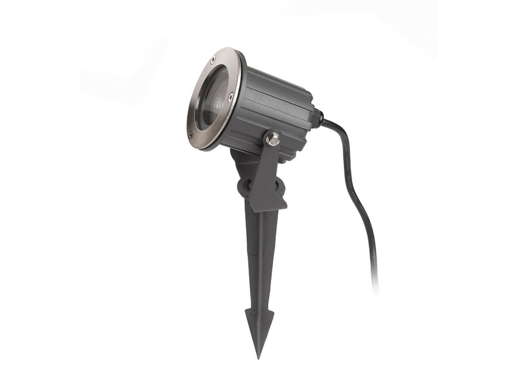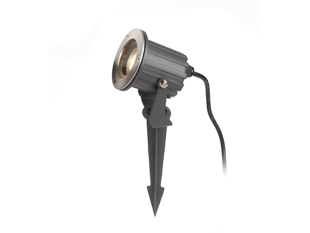Venkovní hliníkový reflektor s bodcem pro LED žárovku s paticí GU10, nerezový čelní rámeček. Včetně přívodního kabelu o délce jeden metr. Kabel není zakončen!Doplňkové parametry