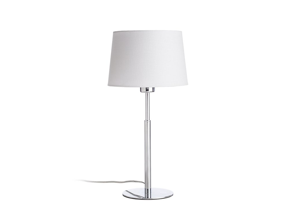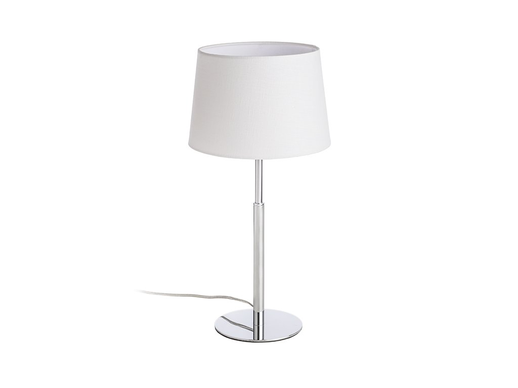 Stolní svítidlo s bílým strukturovaným textilním stínidlem a chromovým podstavcem.Doplňkové parametry