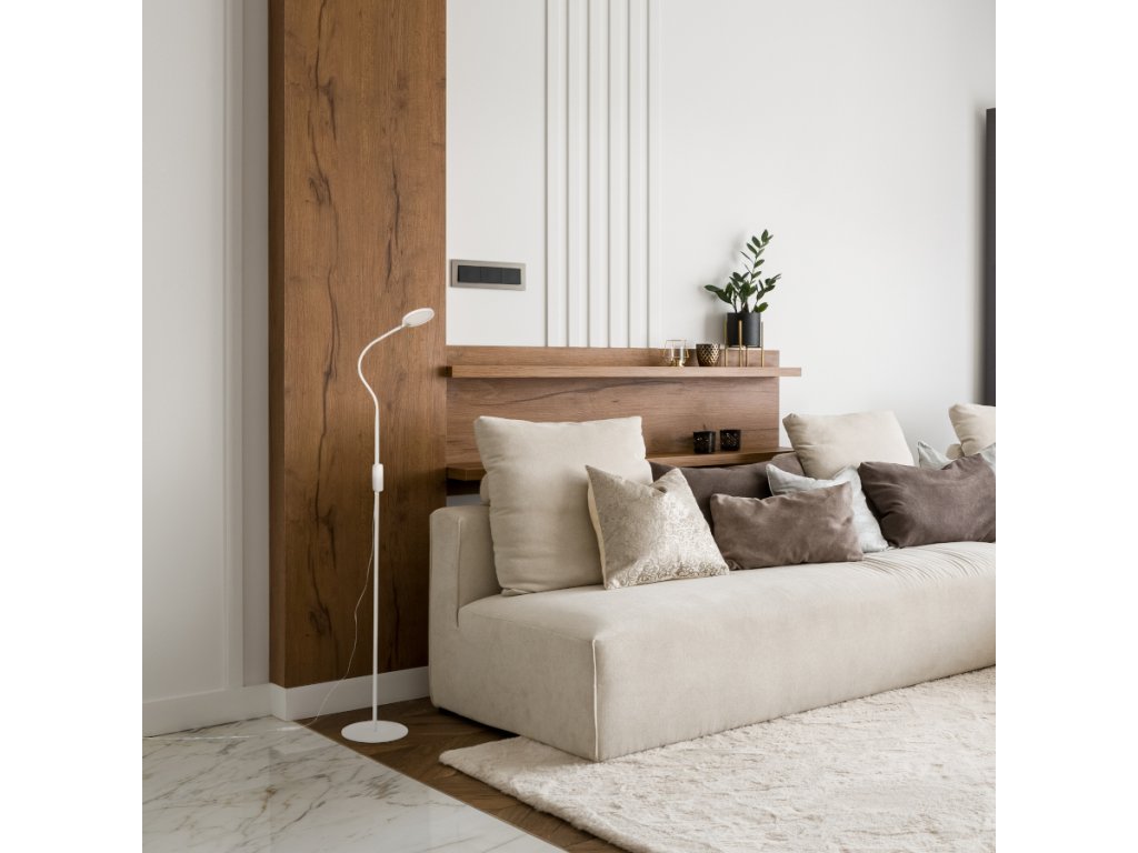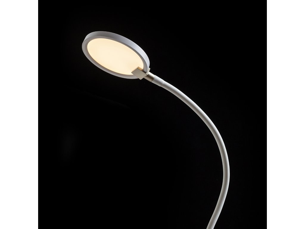 Stojanová stmívatelná LED lampa na ohebném krku s kruhovým reflektorem opatřeným mléčným difuzérem pro rozptýlené svícení. Ovládání je umístěné na stojanu.Doplňkové parametry